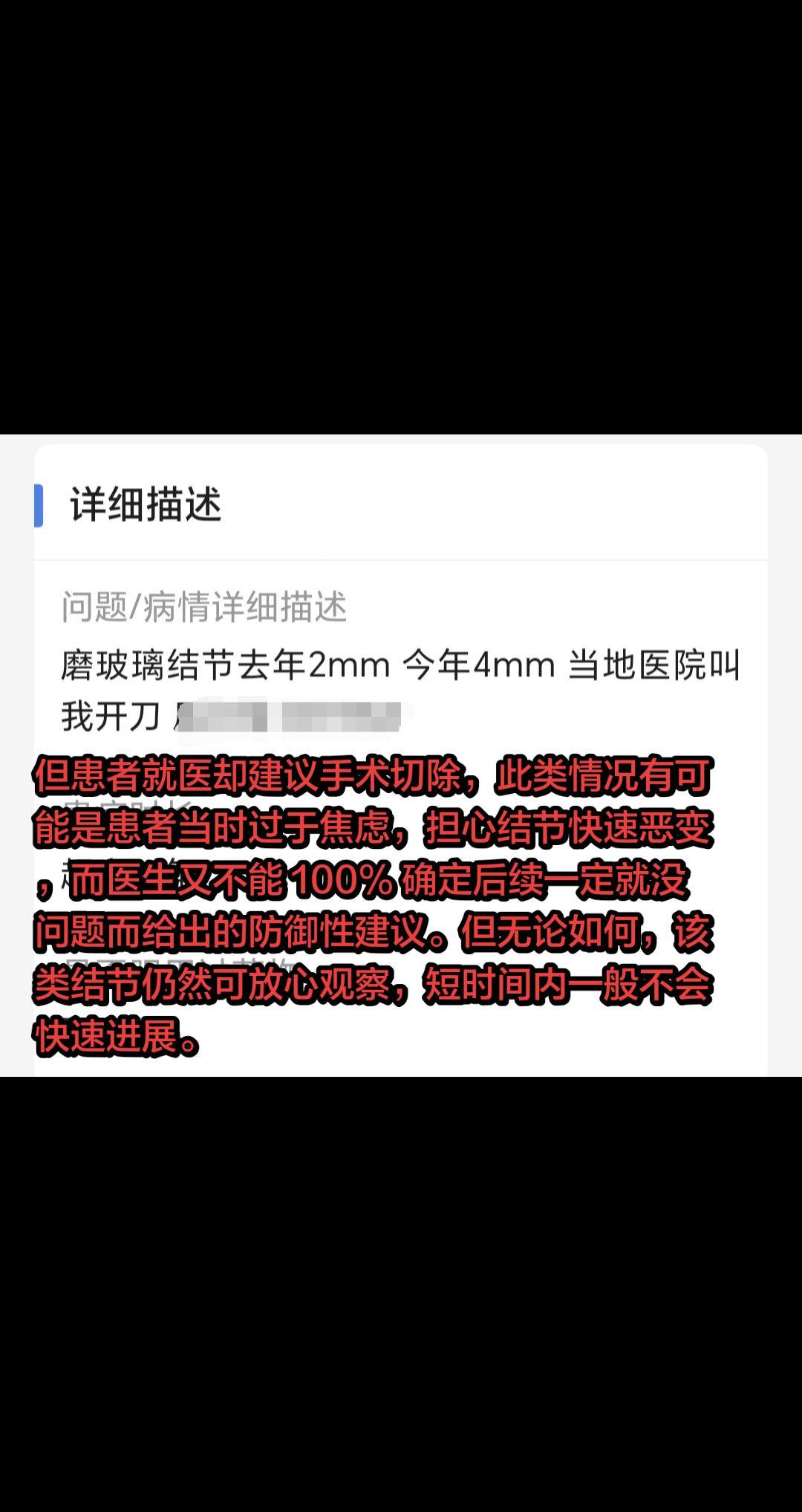 微小纯磨玻璃结就需要手术?一年半前发现右下肺微小纯结节,结节边缘清晰...