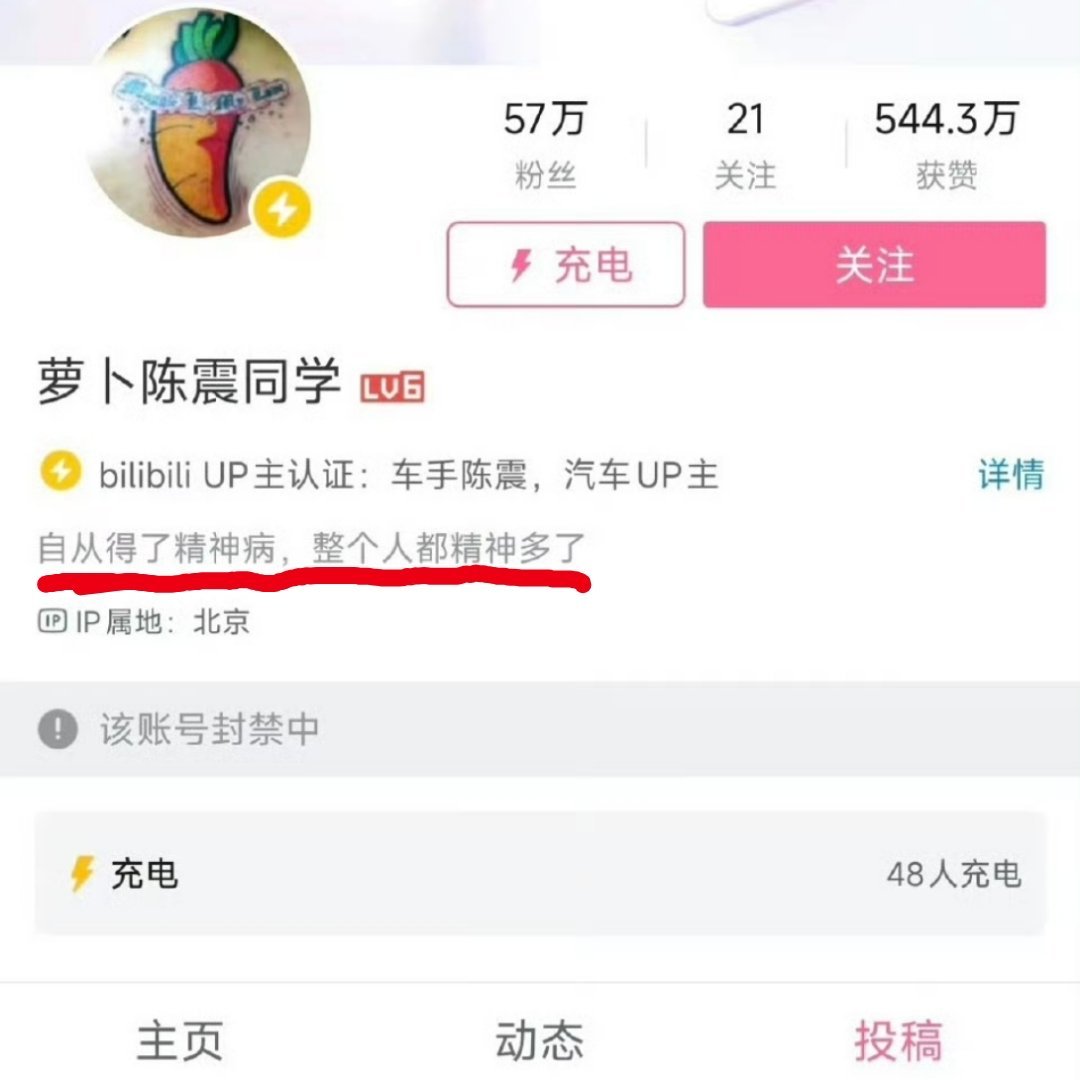 陈震在微博、抖音、小红书、B站被全面禁言,作为顶流大V毫无底线,整天煽动情绪,制