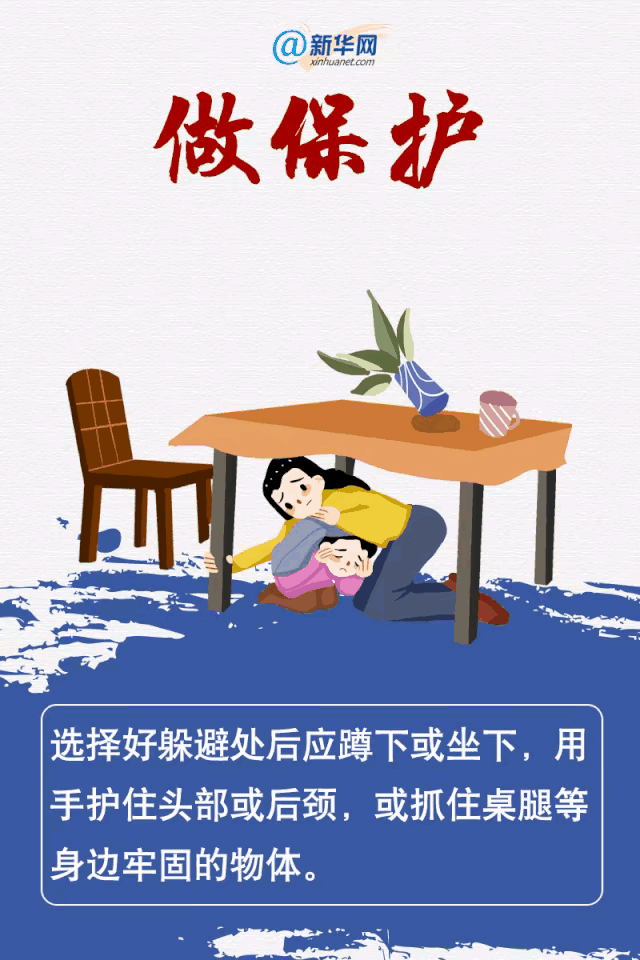 地震来了 你还只会喊“地震了”? 时间就是生命 地震来临时都有哪些应急避险技巧? [奥特曼]地震来临时,掌握正确的应急避险技巧至关重要,以下是不同场景下的应急避险方法: 室内 ● 躲在坚固家具下:迅速躲在桌子等坚固家具的下面,用坐垫、枕头等柔软物品保护好头部、颈部,避免被掉落的物品砸伤。比如在家庭卧室中,可躲在结实的床底下。因为坚固的家具可以承受一定的重物冲击,为你提供相对安全的生存空间。 ● 寻找安全角落:如果没有坚固的家具可躲,可以选择承重墙的墙角处,墙角在建筑结构上相对稳定,能减少被倒塌物体掩埋的风险。身体可紧贴墙根,头部尽量靠近墙面,用双手护住要害部位。 ● 远离危险物品:远离窗户、玻璃门、吊灯等可能掉落或破碎的物品。地震时窗户玻璃可能会被震碎飞溅伤人,吊灯等悬挂物也容易掉落砸伤人员。同时,也要远离易燃易爆物品,如煤气罐等,防止发生火灾或爆炸。 室外 ● 远离建筑物:尽快跑到空旷的地方,如广场、操场等,远离高楼大厦、电线杆、广告牌等可能倒塌的物体。地震可能导致建筑物结构受损而倒塌,距离建筑物越远,受到伤害的可能性就越小。 ● 避开危险区域:避免靠近山体、河流、桥梁等容易发生危险的地方。山体可能会发生滑坡、泥石流等地质灾害,河流可能会出现水位上涨、决堤等情况,桥梁在地震中也可能会坍塌。 ● 注意周围环境:观察周围是否有其他危险,如漏电的电线、火灾等。如果发现有漏电情况,要及时远离;如果遇到火灾,要逆风方向逃离,并尽量用湿毛巾捂住口鼻,低姿前行,以避免吸入浓烟。 在公共场所 ● 听从指挥:在学校、商场、电影院等公共场所,要听从现场工作人员的指挥,有序疏散。工作人员通常经过相关培训,能够引导大家安全撤离。 ● 避免拥挤踩踏:在疏散过程中,要保持冷静,不要惊慌乱跑,避免发生拥挤踩踏事故。如果被挤倒,要尽量靠近墙壁,身体蜷成球状,双手在颈后紧扣,保护好身体的重要部位。 ● 特殊场所的应对:在电梯里时,应尽快按下每一层楼的按键,待电梯停下后迅速离开。如果被困电梯,不要惊慌,可通过电梯内的紧急呼叫装置求救。 地震发生后,还需要注意防范余震的发生,确认安全后再进行下一步行动。同时,要及时关注官方发布的信息,了解地震的情况和救援进展。地震攻略 地震避险方法 地震避险方式 地震安全小贴士