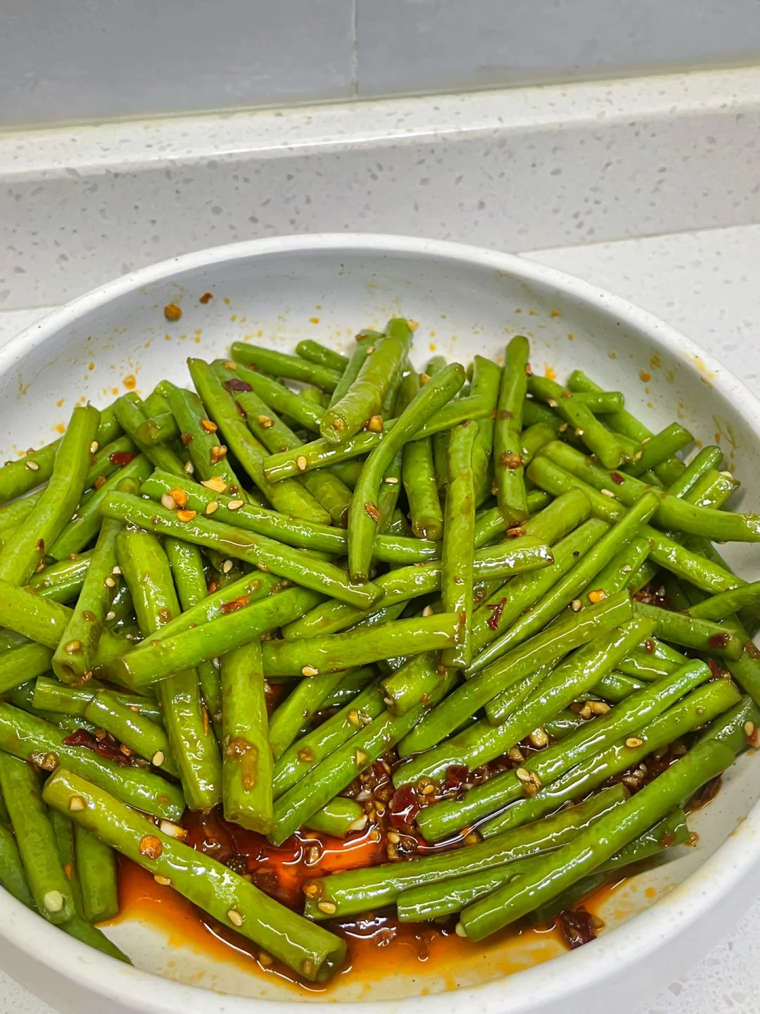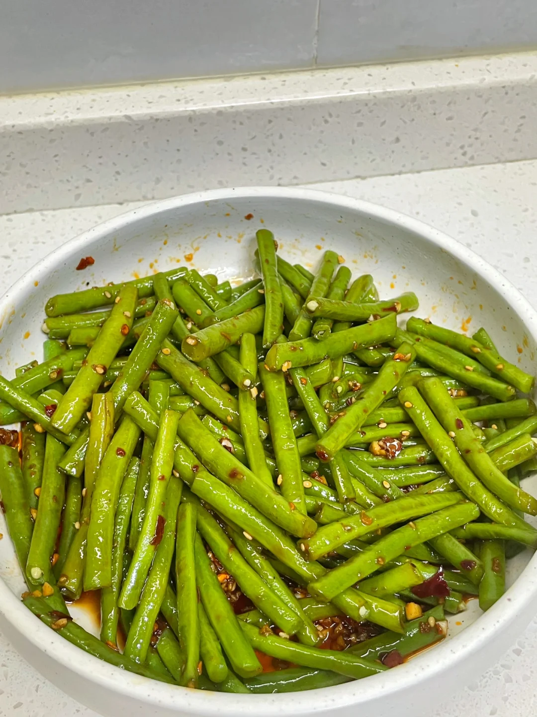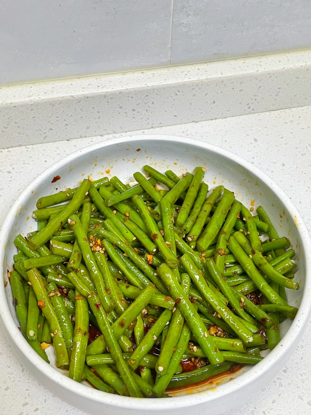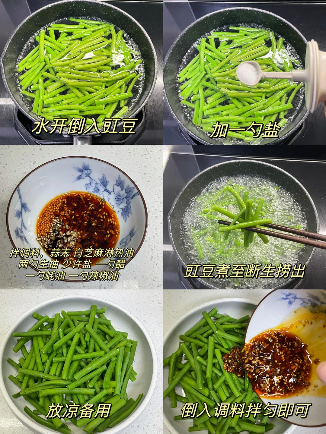 超级简单又好吃的凉拌豇豆,夏日绝配,吃不下热乎乎的菜,来一份凉拌豇豆也太爽了~ 食材:豇豆 配料:蒜末 白芝麻 辣椒油 生抽 盐 醋 蚝油 1⃣️:豇豆掐成段洗净,水开放入豇豆加一勺盐,煮熟后捞出放凉 2⃣️:准备调料,蒜末白芝麻淋热油 半勺盐 两勺生抽 一勺辣椒油 一勺醋一勺蚝油拌匀 3⃣️,放凉的豇豆加入调料拌匀即可