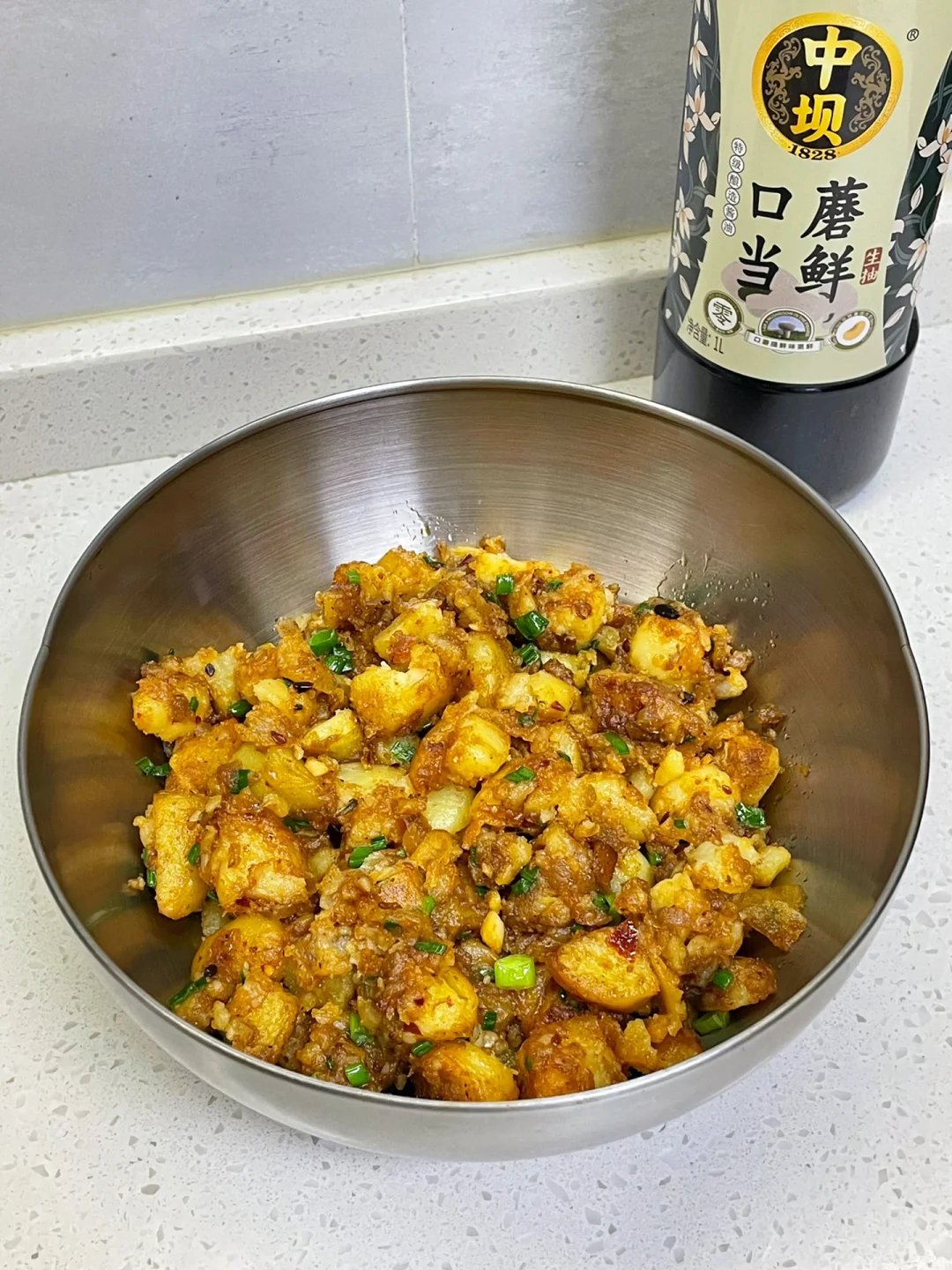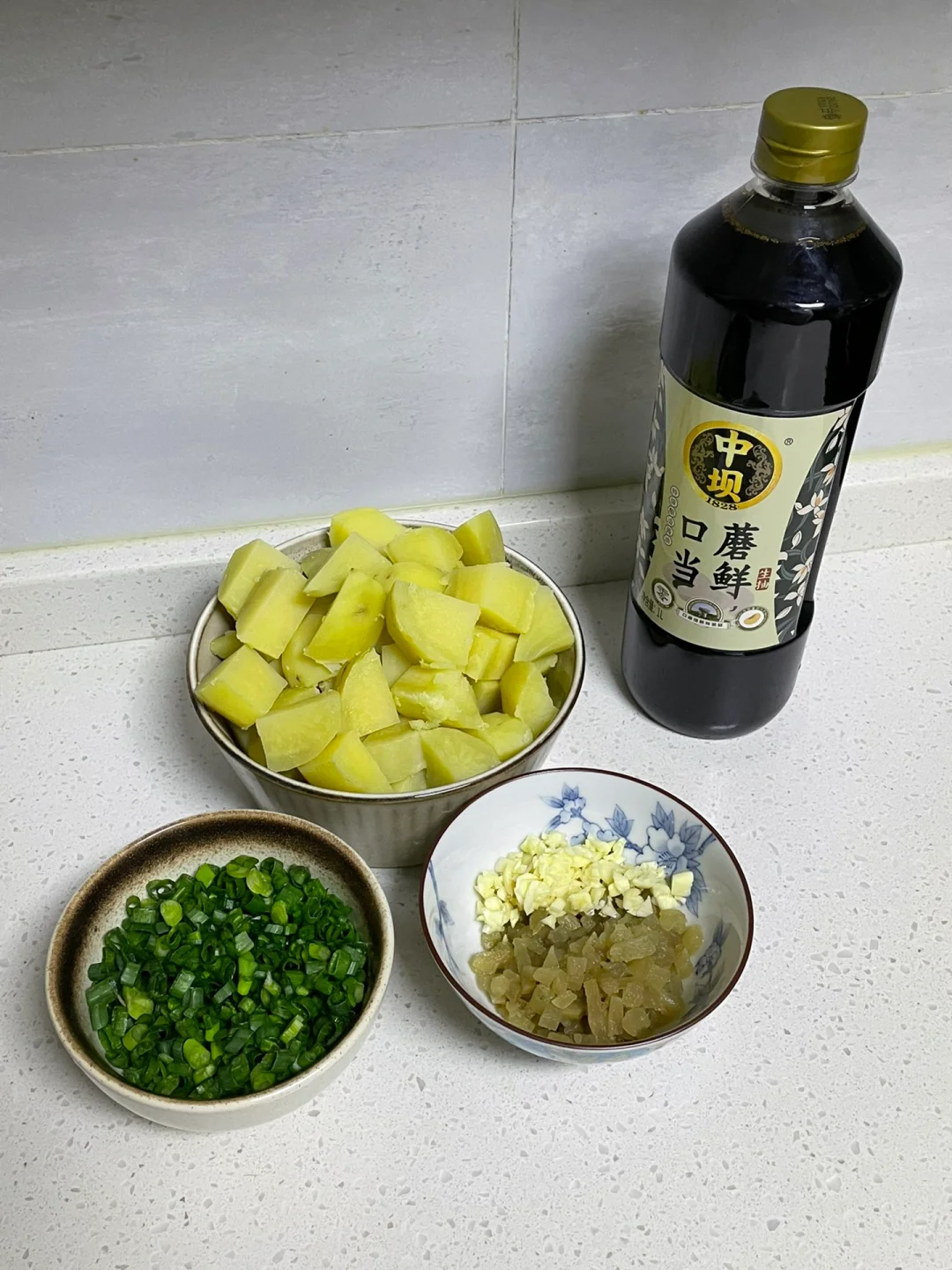 1⃣️:土豆去皮下锅煮熟捞出控干水分,切成小块备用