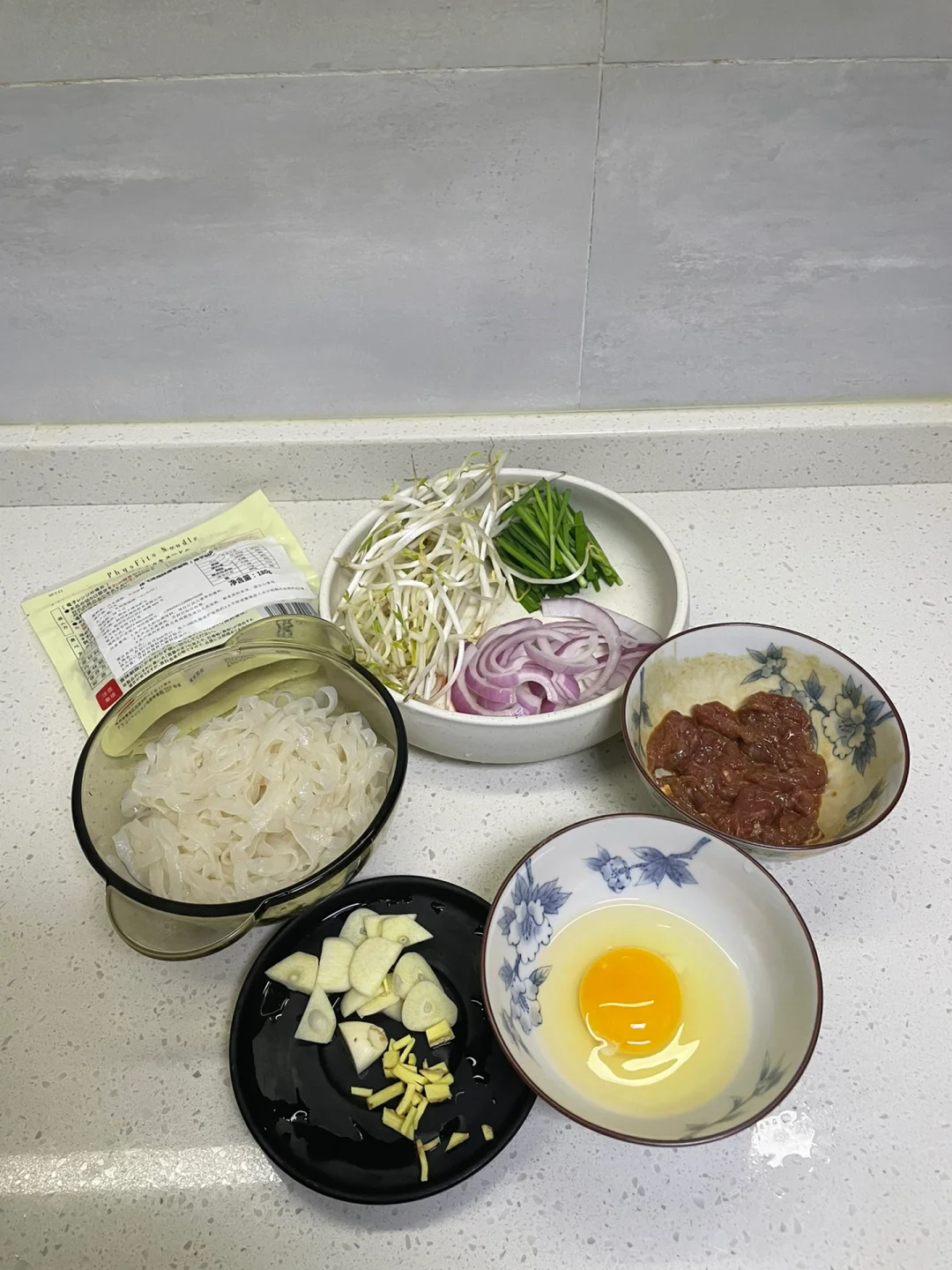 食材:魔芋面 洋葱 豆芽 牛肉 韭菜 鸡蛋