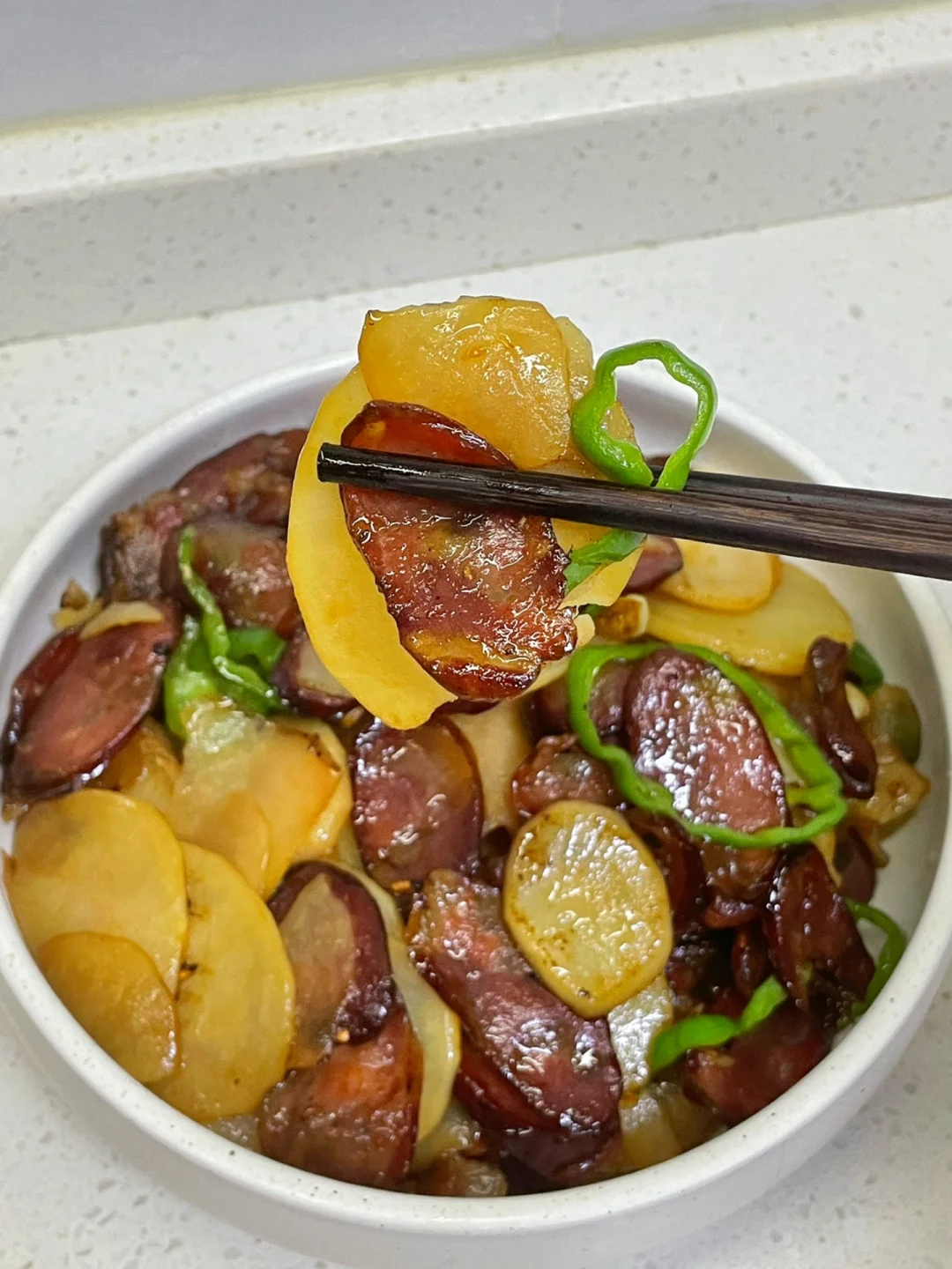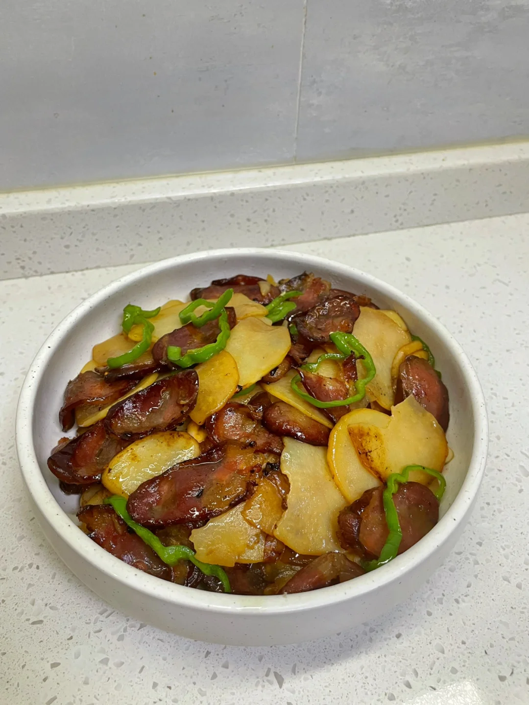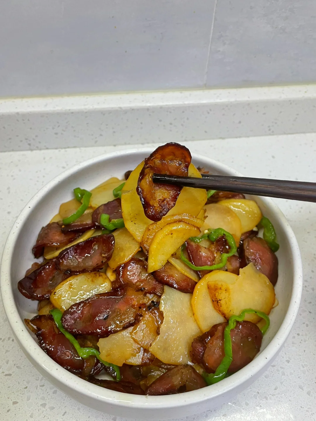 香滋滋的腊肠炒土豆片,妥妥的下饭神器🤤
