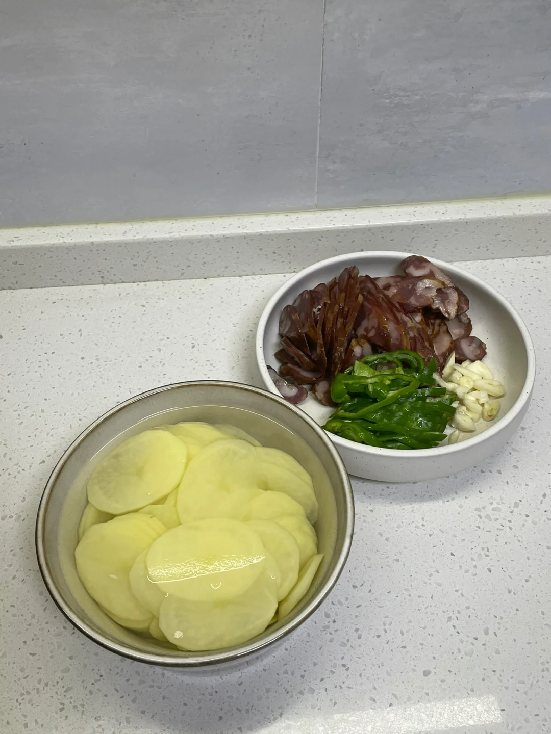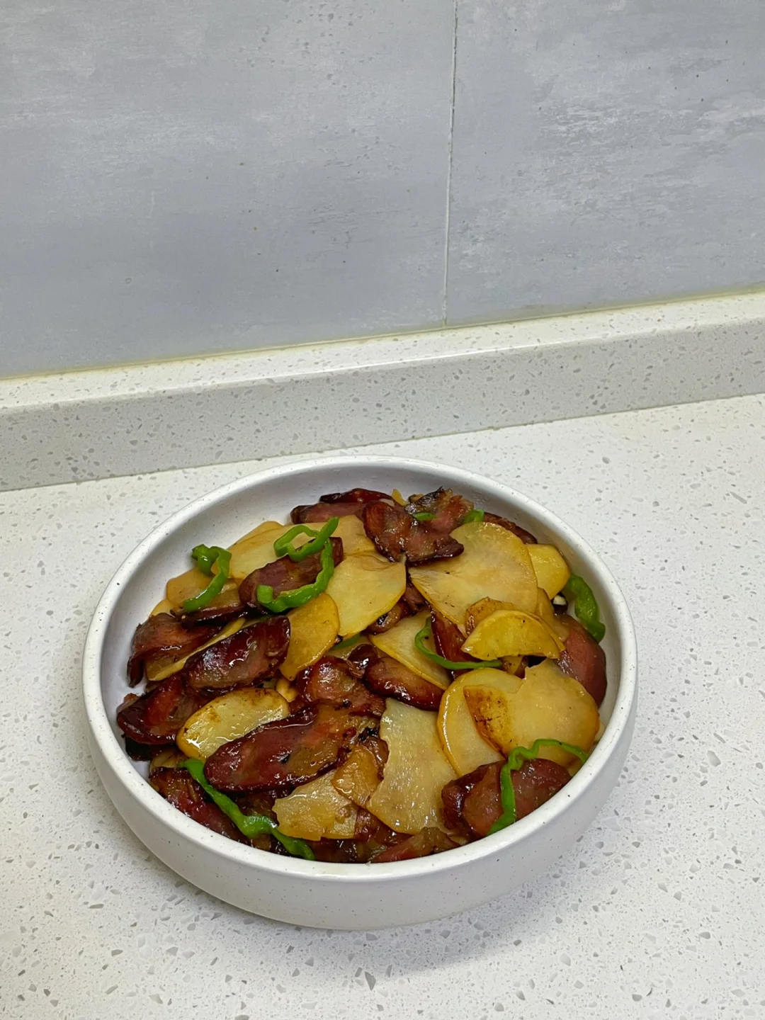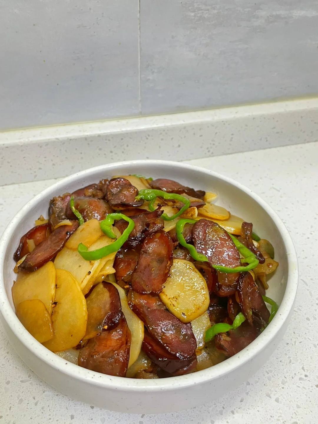 香滋滋的腊肠炒土豆片,妥妥的下饭神器🤤