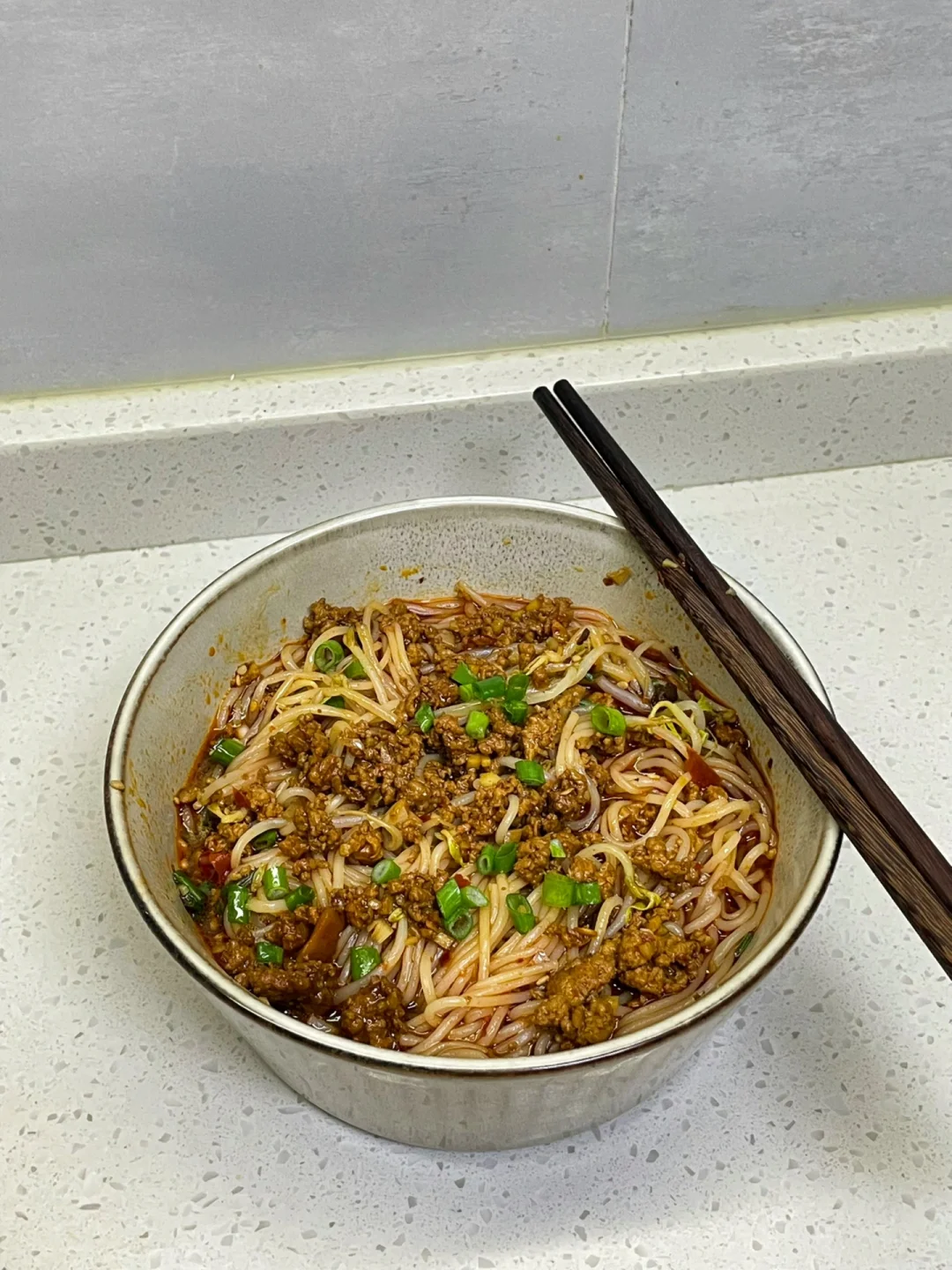 炸酱米线也太巴适了,爱惨了这碗米线了,灵魂红油辣椒和加不完的杂酱臊子,比在面馆吃得过瘾多了~