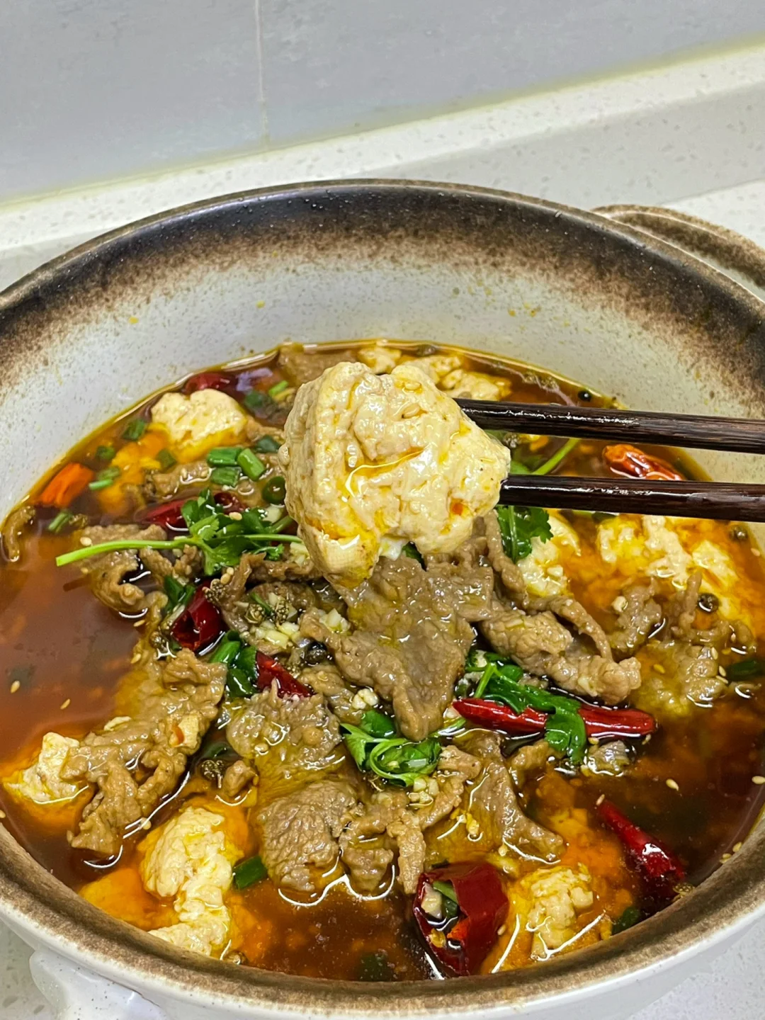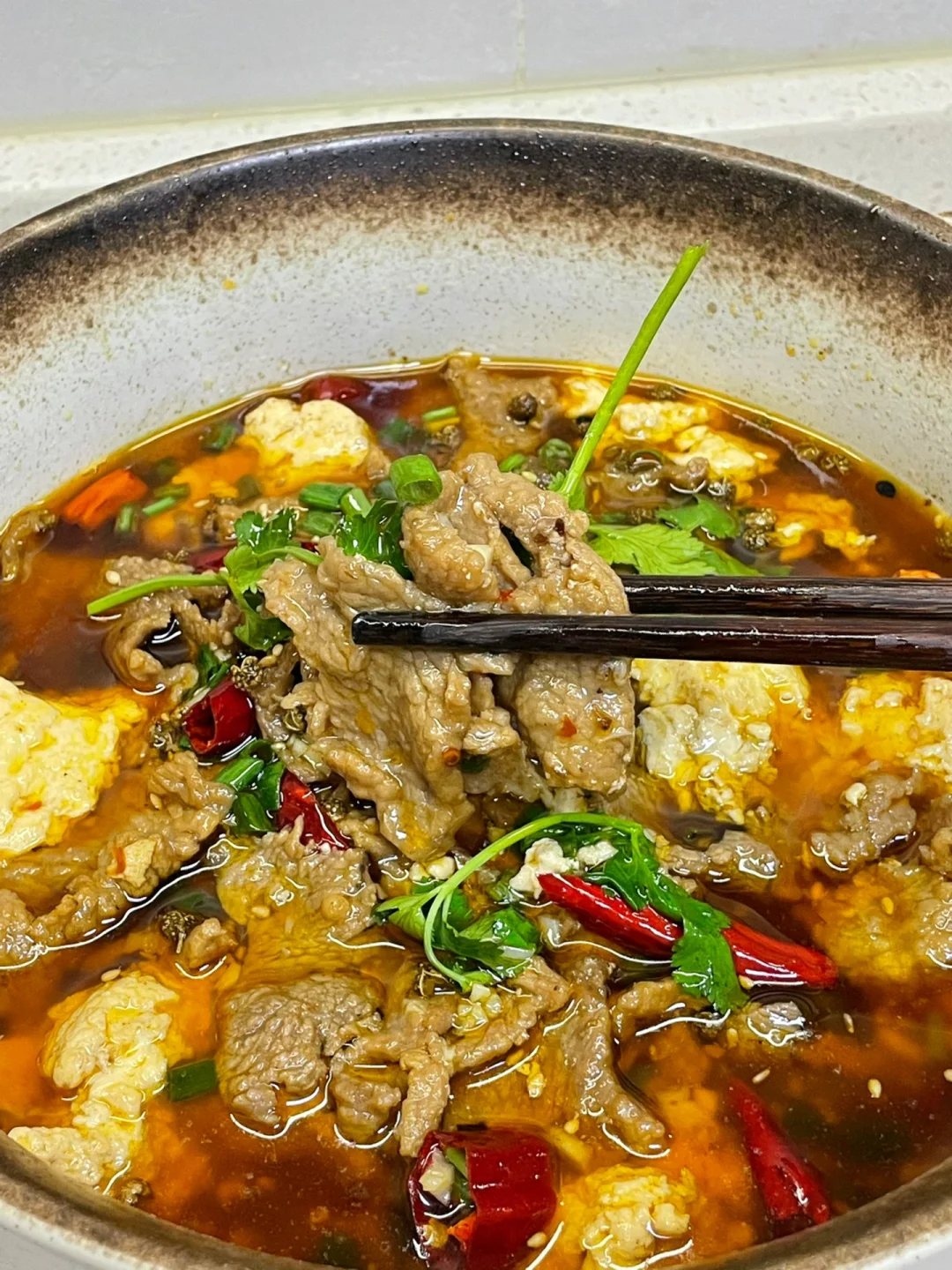无敌下饭的水煮豆花牛肉来啦,太太太好吃🤤
