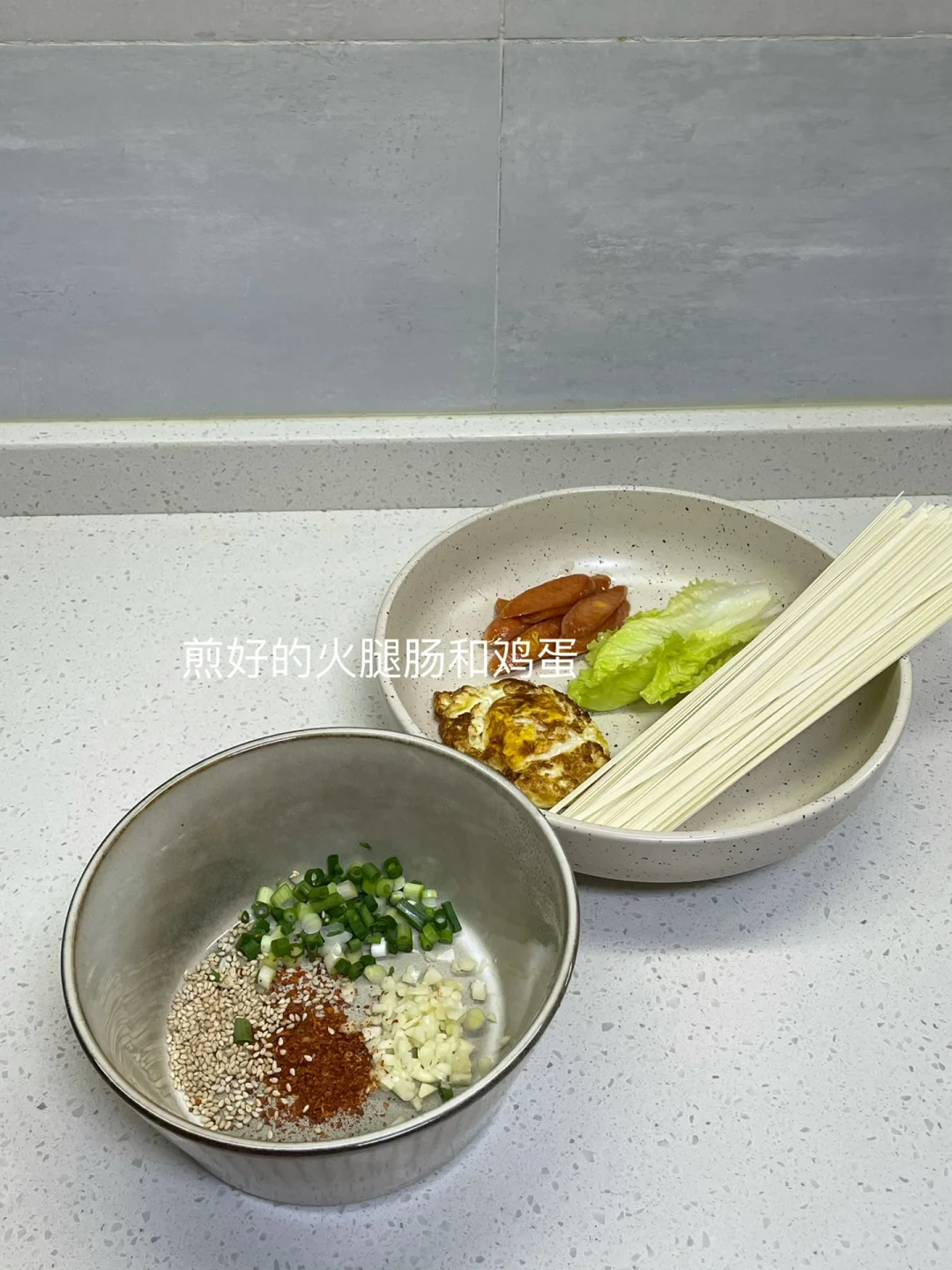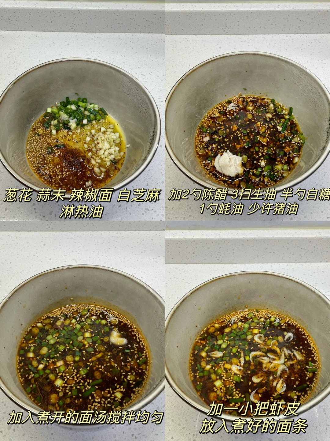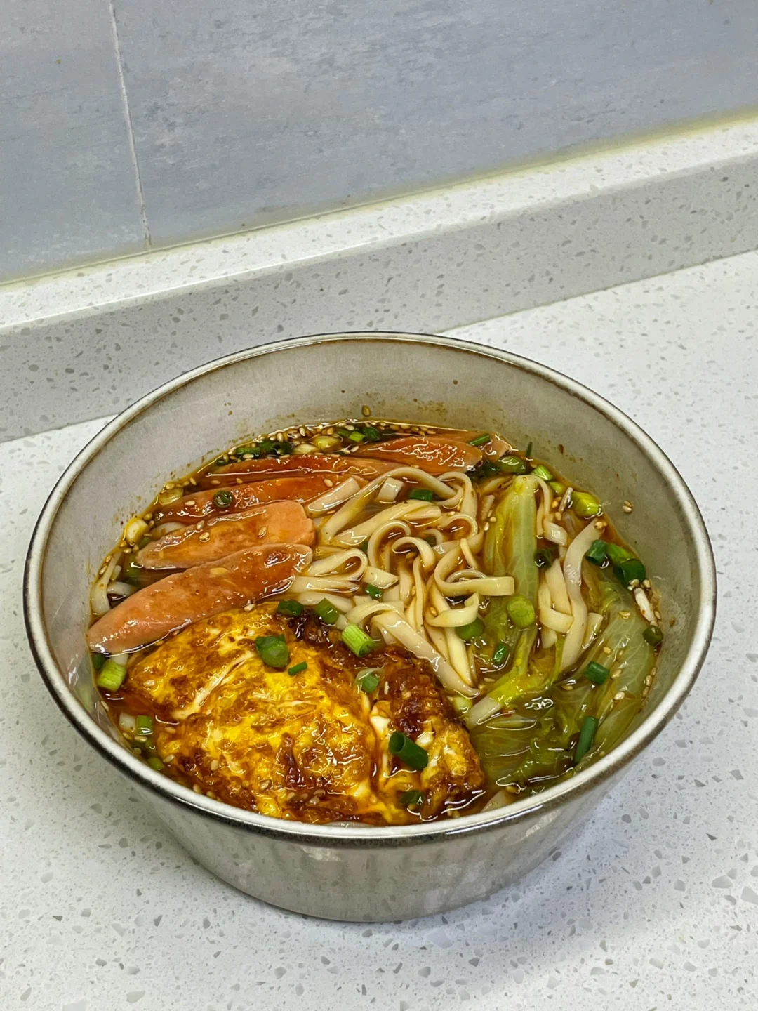 这碗酸汤面也太好吃了,汤汁都可以喝完,重点是简单快手还营养丰富哦~ 食材:面条 鸡蛋 生菜 火腿肠 配料:葱花 蒜末 白芝麻 辣椒面 猪油 生抽 胡椒粉 陈醋 蚝油 白糖 1⃣️:鸡蛋和火腿肠煎好备用,碗中加入蒜末 葱花 辣椒面 白芝麻淋热油,加两勺陈醋 三勺生抽 一勺蚝油 半勺白糖 加煮开的面汤搅匀 可以再加些虾皮 2⃣️:锅中水开加入面条和青菜煮熟放入碗中,加入煎蛋和火腿肠,撒葱花即可