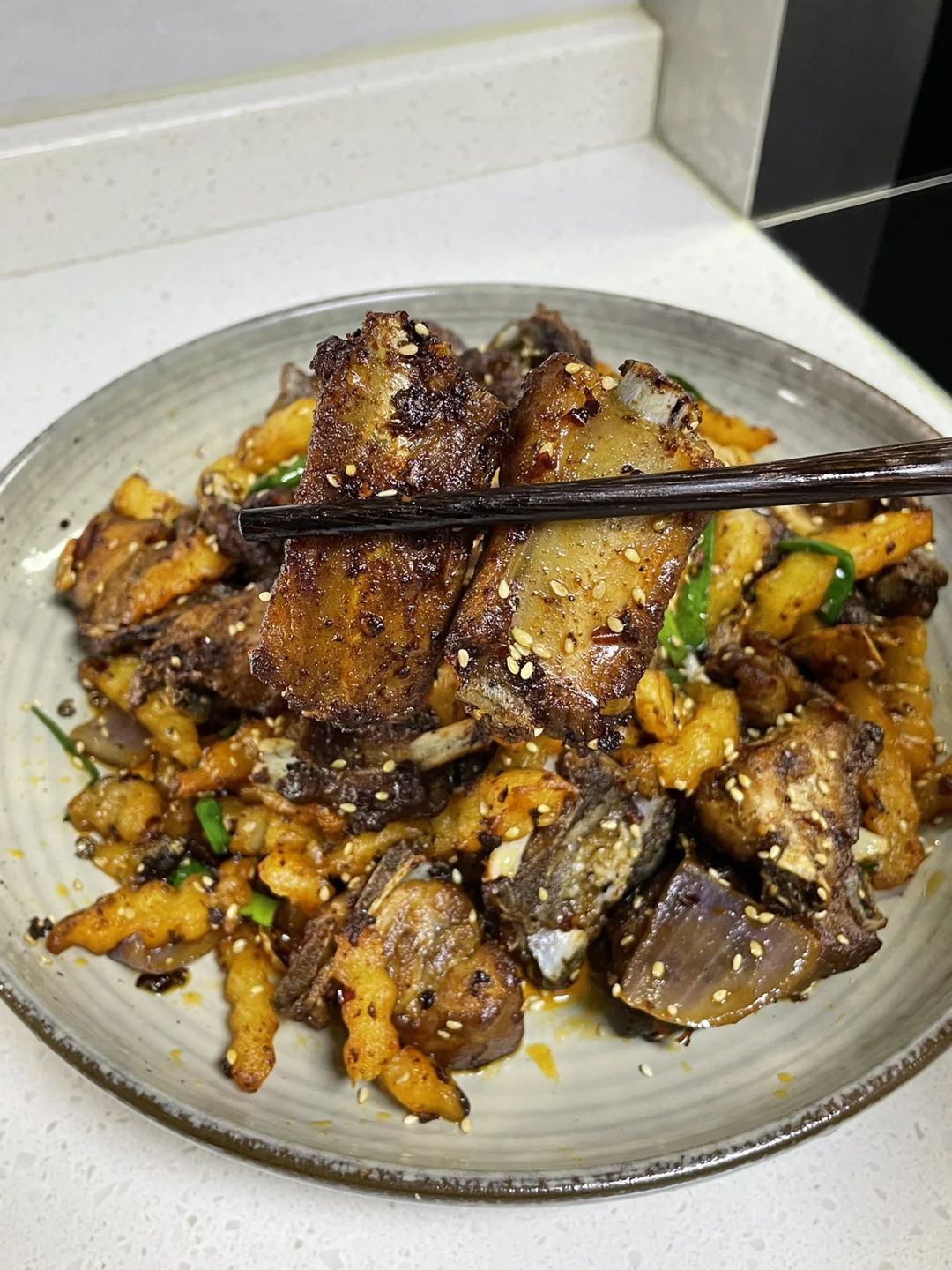 还有什么比大口吃肉更过瘾的呢,排骨这样做也太香了,好无奈,含泪干了两碗饭[哭惹R]