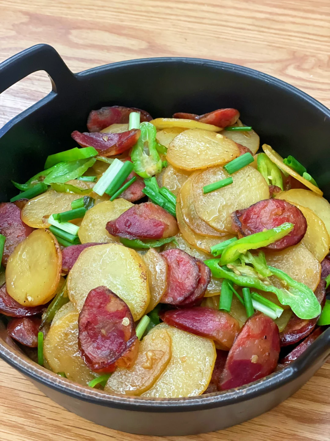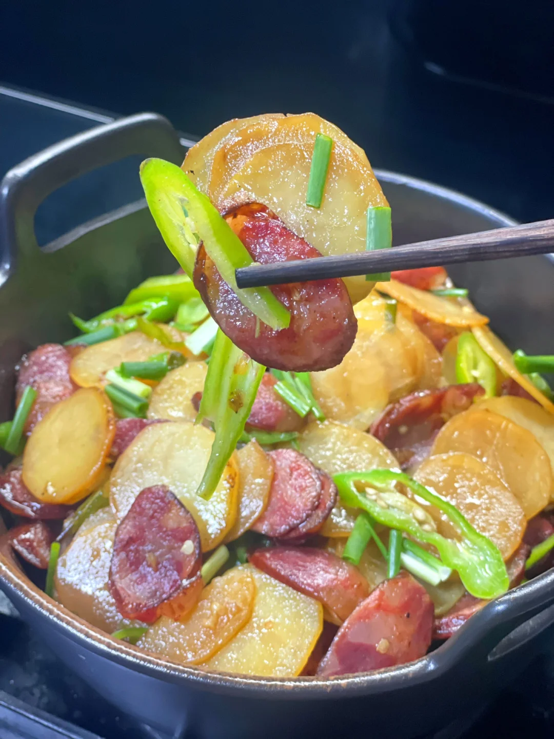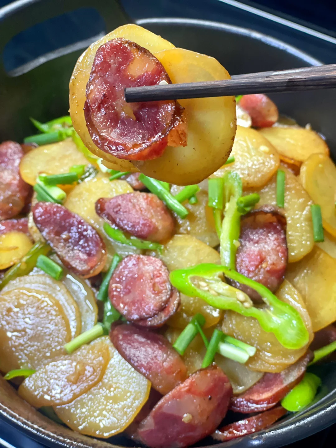 香喷喷的腊肠炒土豆,美味下饭的家常菜🤤