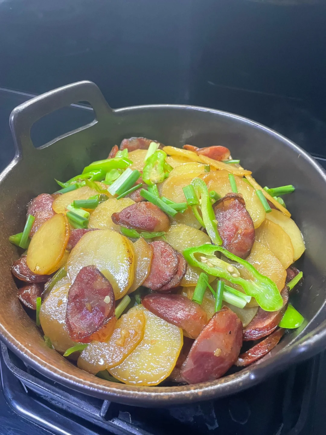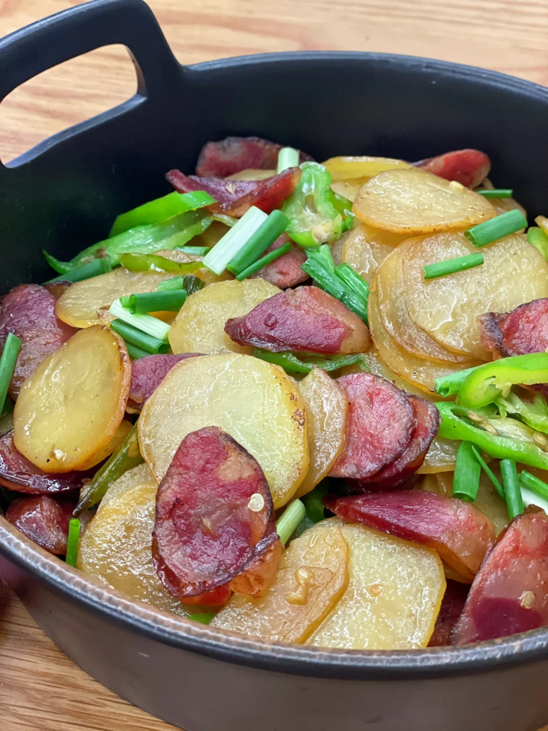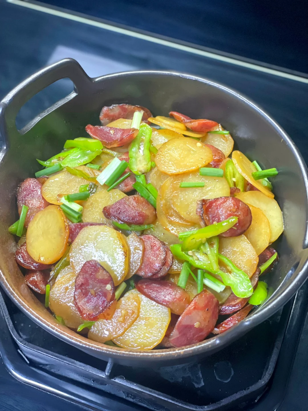 香喷喷的腊肠炒土豆,美味下饭的家常菜🤤