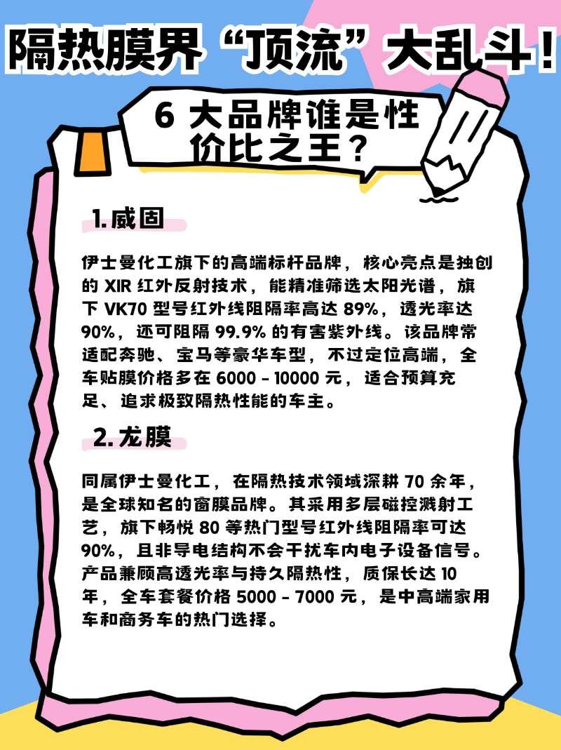隔热膜界“顶流”大乱斗!6大品牌谁是性价比之王?【来自懂车帝车友圈】