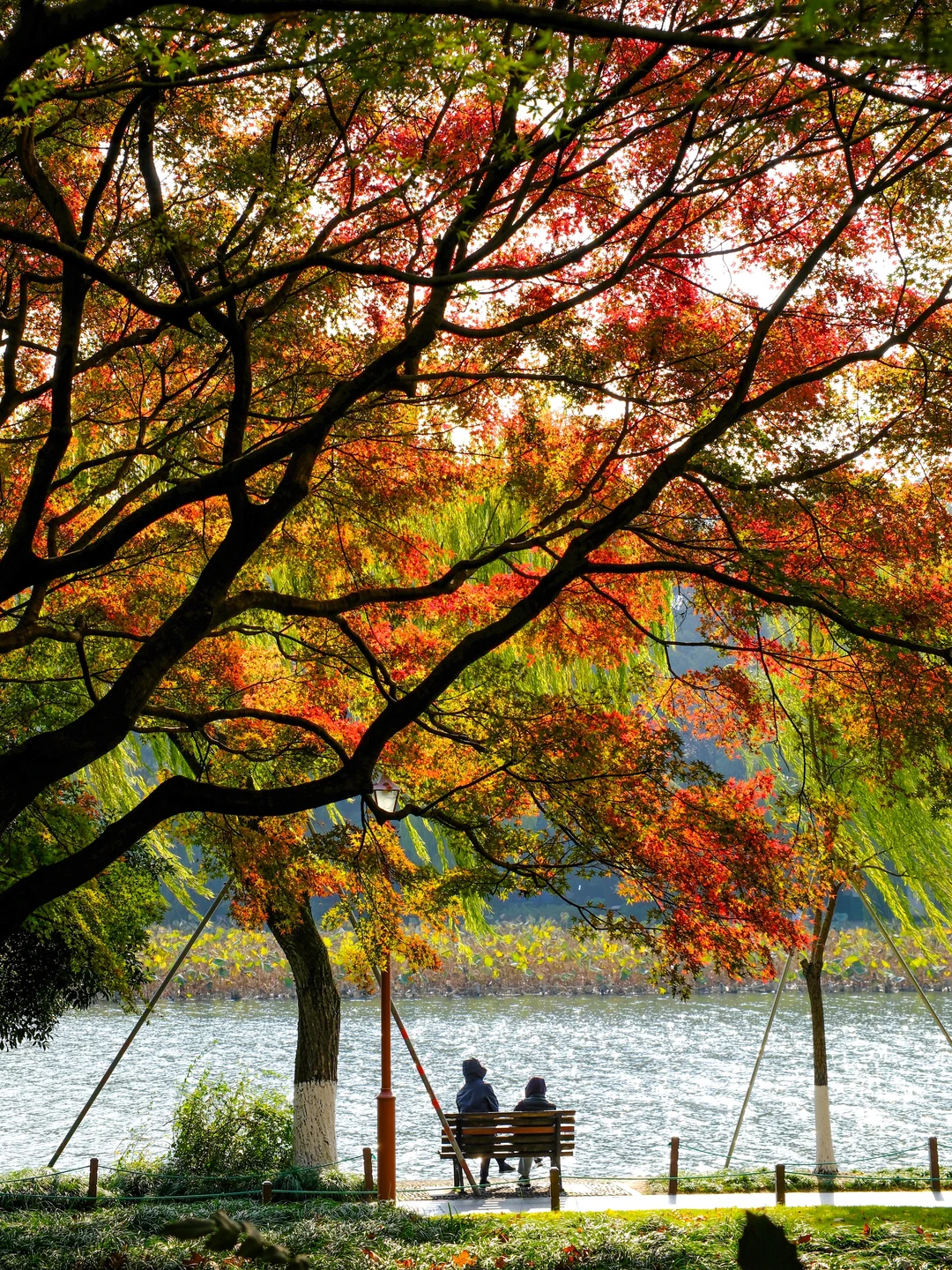 📖读书的时候每天骑车路过北山街,春夏秋冬的景色各有不同,不过不得不说每年的这个时候是我最爱的景色啦~🍂梧桐大道和多彩枫树搭配西湖,真是太绝了~拍不完根本拍不完。🌊湖边找个长椅坐着发发呆也是超治愈的