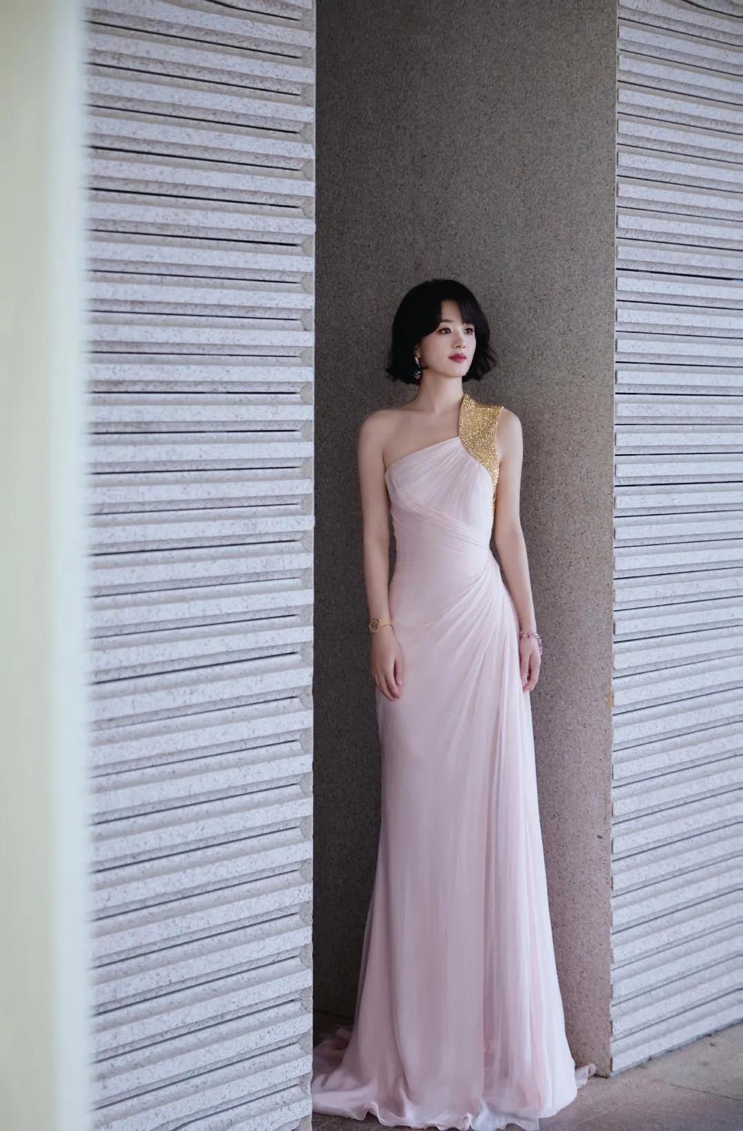 赵丽颖金鸡奖造型:粉裙配金肩,这才是优雅到骨子里的美 赵丽颖第37届金鸡奖造型太戳心了!粉纱斜肩裙柔得像雾,单肩的鎏金闪钻又添了贵气,短发衬得肩颈线条清透又舒展~ 低头捻花那一下,温柔里裹着松弛感,这“氛围感女神”是直接长在审美上了!