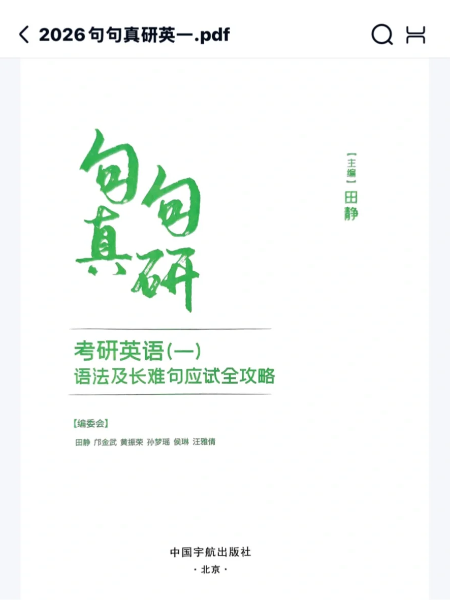 26考研田静句句真研电子版来啦