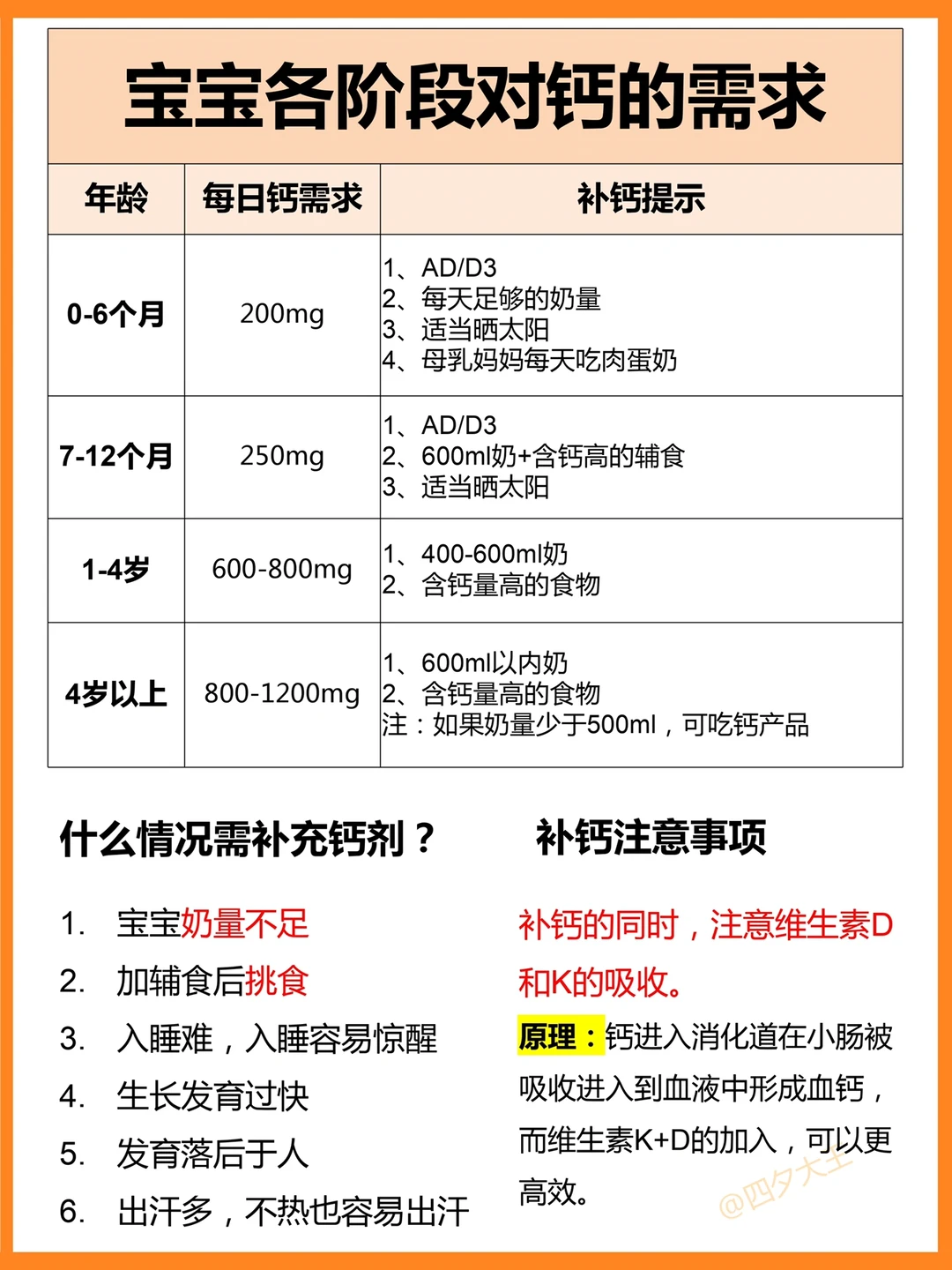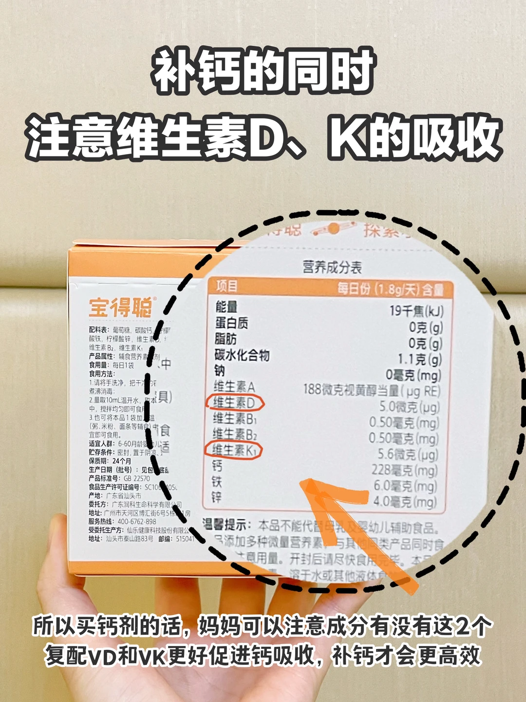 ④ 补钙期间,注意维生素D、K的同时补充,钙DK三效协同,一步到位,能更高效补钙!!