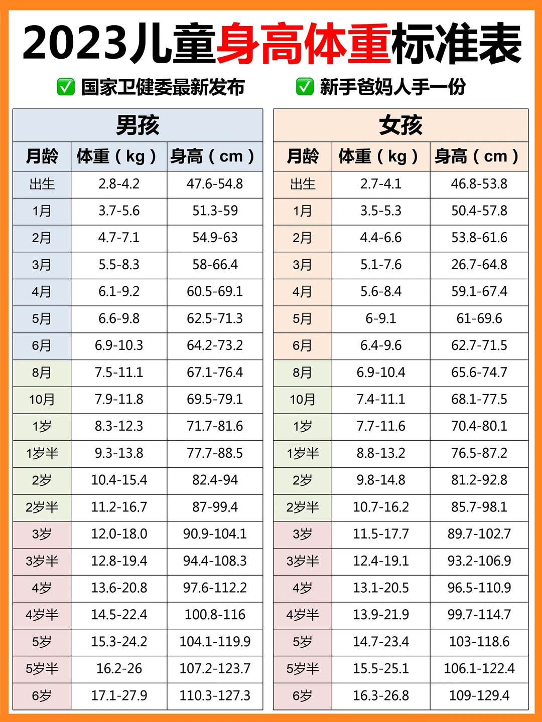 4、2023版儿童身高体重表(国家卫健委发布)