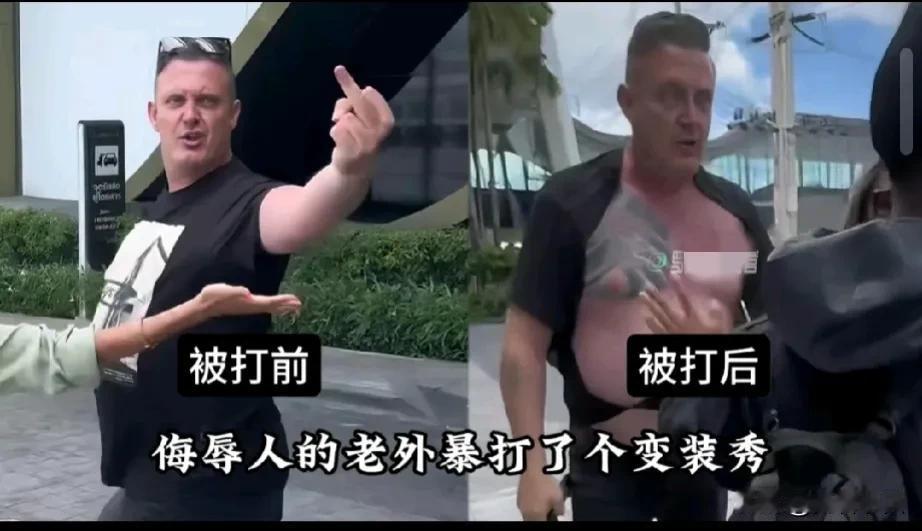 不要企图惹怒中国女人。 一姐妹在泰国带着老妈和孩子游玩被一老外撞了,对方不仅不道歉甚至还用歧视手势示威。 这可惹怒小姐姐,直接跟老外硬刚到底一边举着手机拍证据一边手撕两米壮汉。瞬间时间老外衣服就被小姐姐撕破了,这小姐姐长得那么好看,战斗力还那么厉害原来人家是练泰拳的。 老外算踢到铁板了,歧视别人终归要还的。