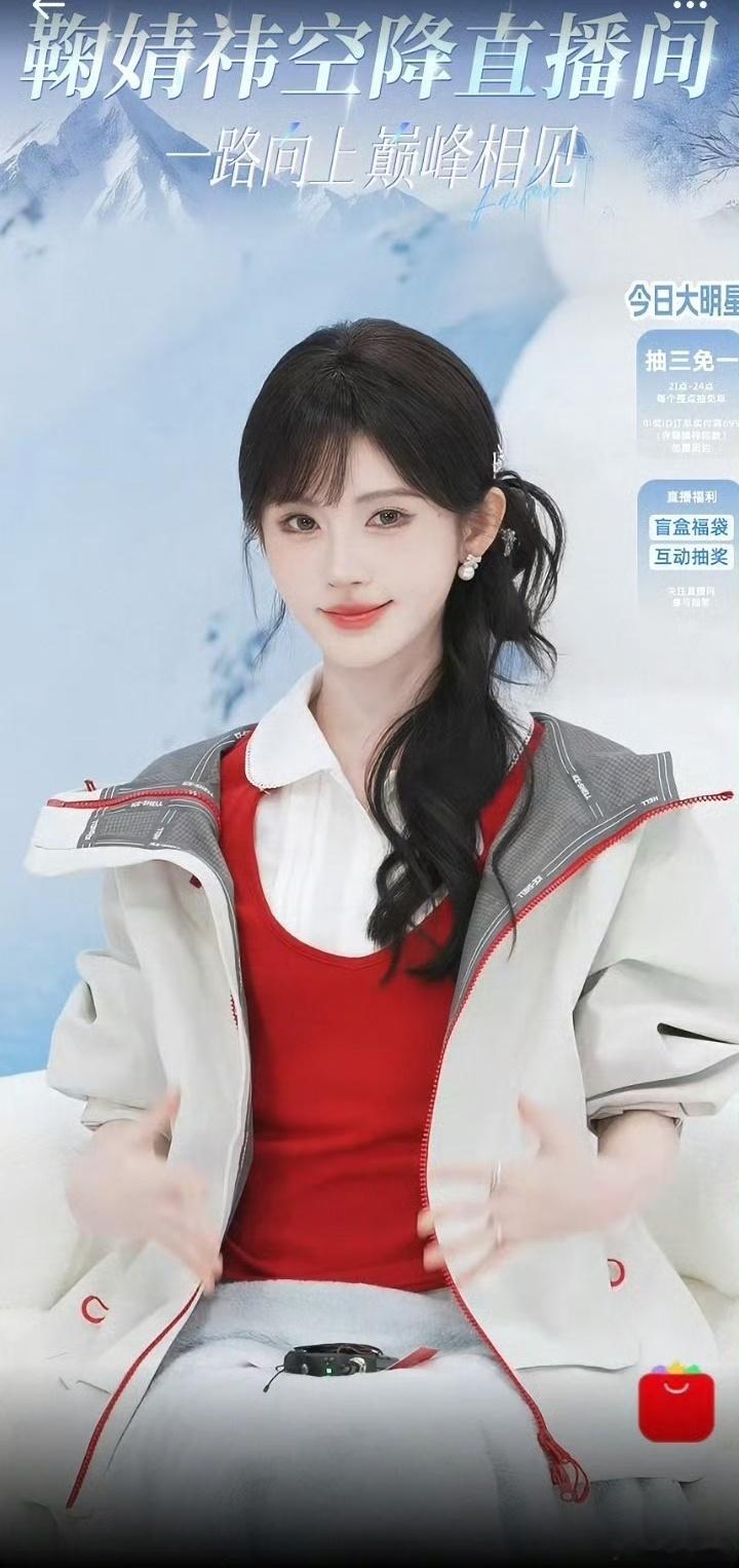 鞠婧祎直播 鞠婧祎的直播简直是完美!那一抹侧编发搭配着亮眼的大眼睛,完全是萌神降临!每一场直播都能收获满满的幸福感,期待她的下一场!