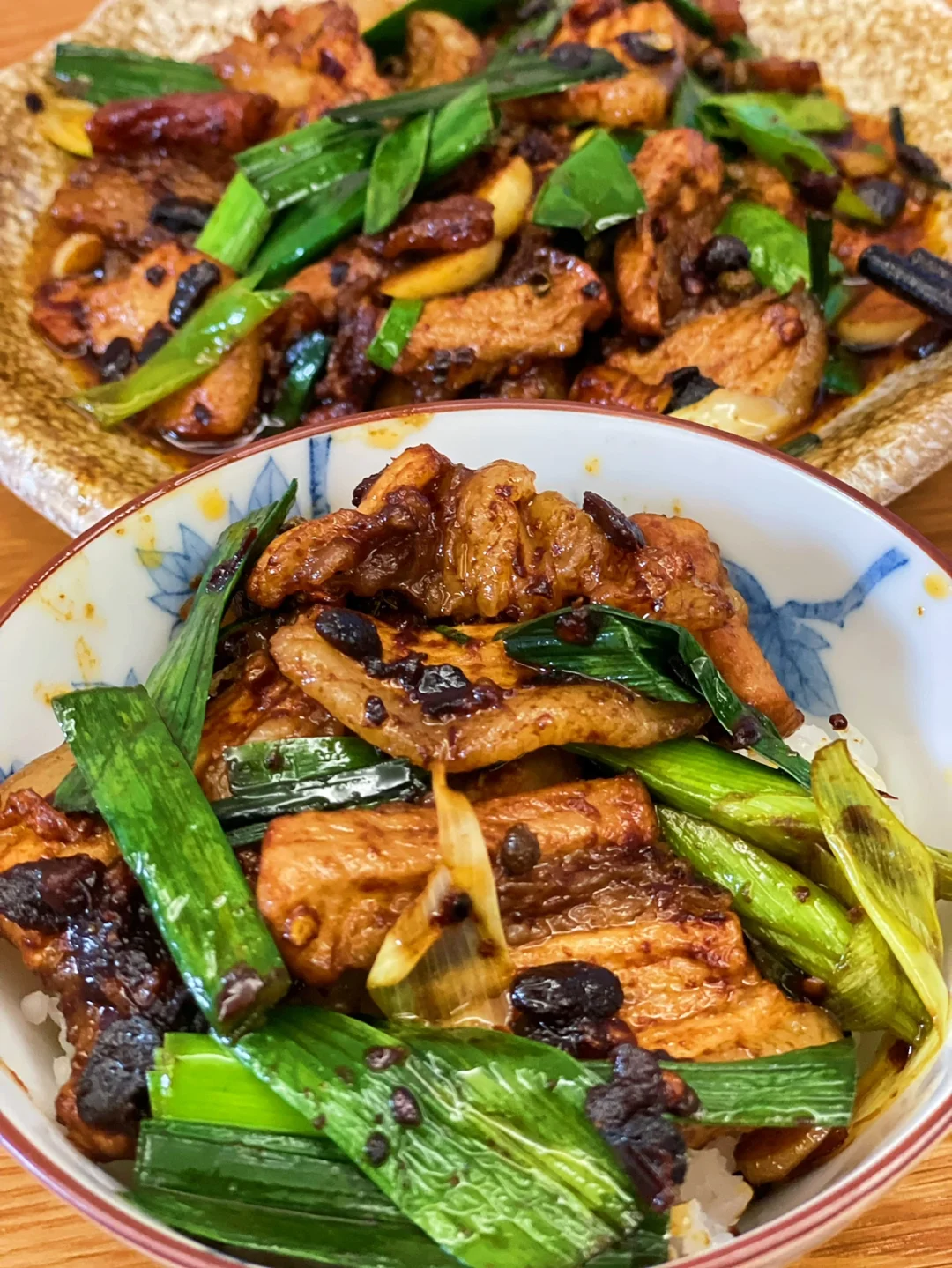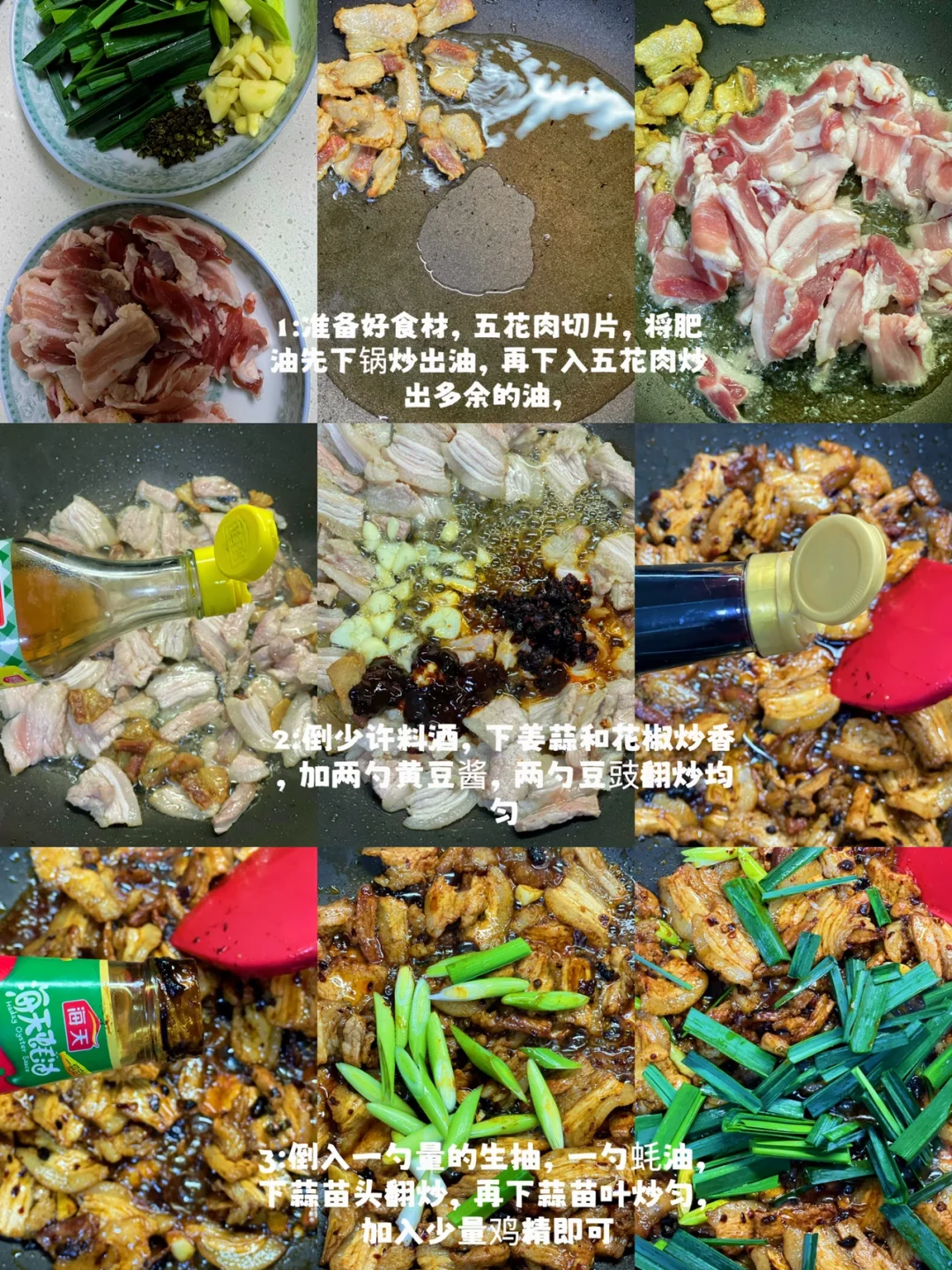 下饭菜又来啰😋盐煎肉,一看就可以炫几碗饭的炒香下饭菜,比回锅香,做法还简单,去皮后的五花肉,一看就是下饭神器🍚🍚🍚 🧾食材:五花肉,蒜苗,姜蒜,花椒少许 1⃣️:五花肉洗净去皮后切成片,蒜苗切段,大蒜和姜切碎 2⃣️:锅热先下肥油煸炒出油,再下五花肉炒出多余的油,加少许料酒,两勺黄豆酱,两勺豆豉炒匀 3⃣️:倒入一勺量的生抽和蚝油,下蒜苗头炒匀,再下蒜苗叶,加一勺鸡精炒匀即可(不喜欢鸡精的可以不放,喜欢辣味儿重一点的可以加点小米辣)