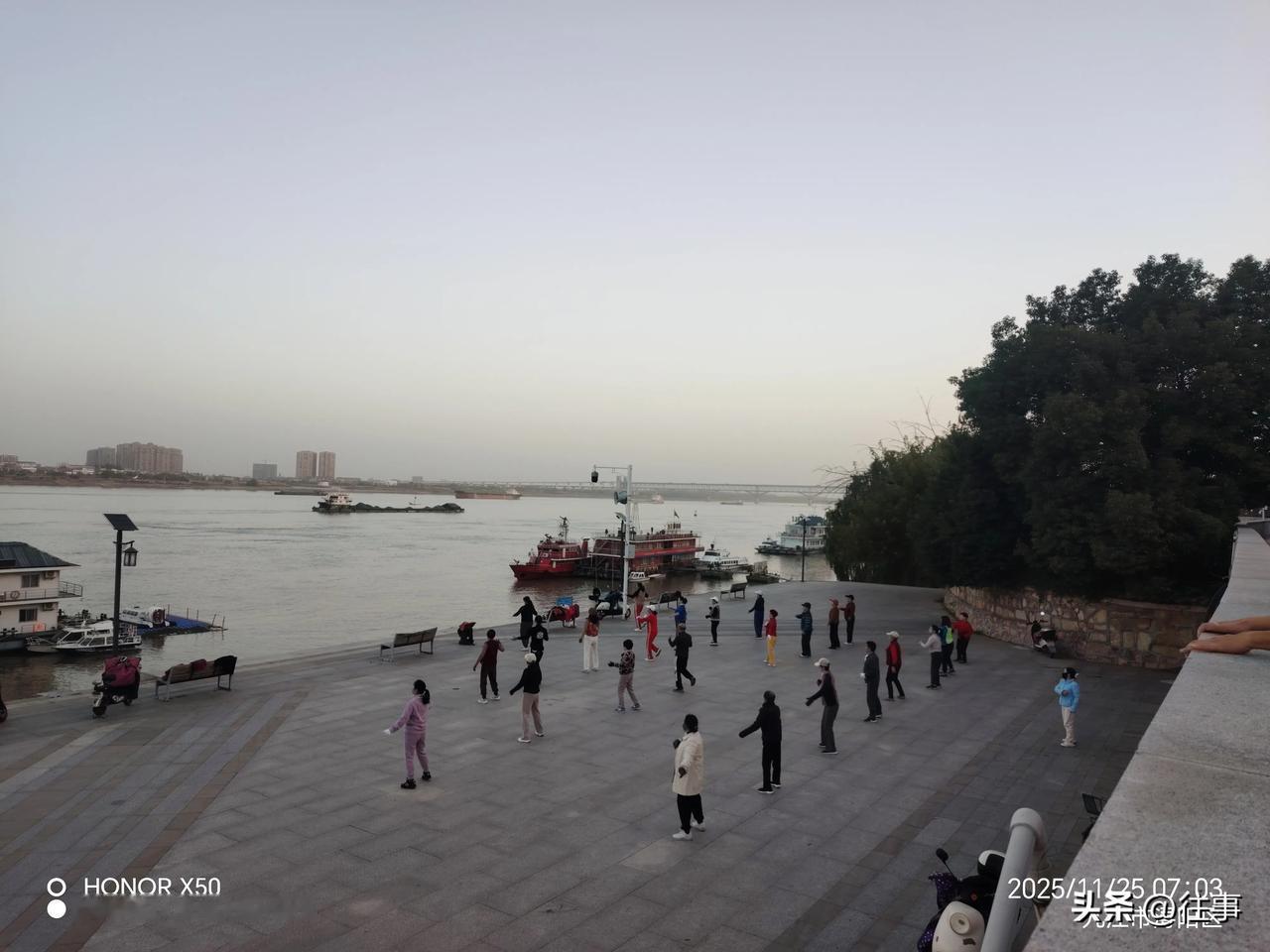 晒图笔记大赛11月25日长江岸边晨练打卡
