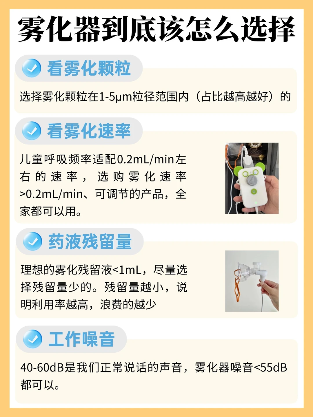 说到雾化器,我也是踩过坑的。开始图便宜买过一个,声音像小拖拉机,孩子一听就害怕😱,死活不肯做,雾化颗粒也粗,做完孩子嘴边都是水珠,感觉药没吸进去多少,全浪费了。