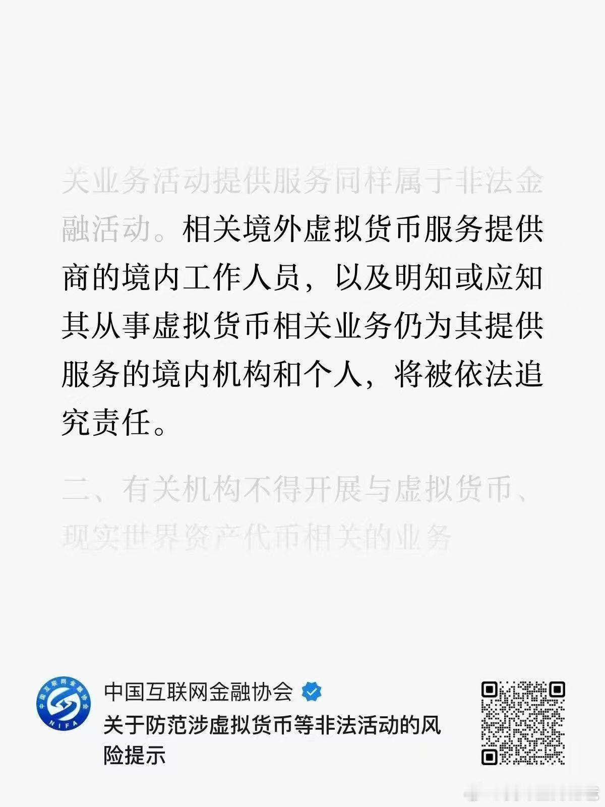 七协会首次亮剑: 严禁机构开展虚拟货币、RWA代币相关业务