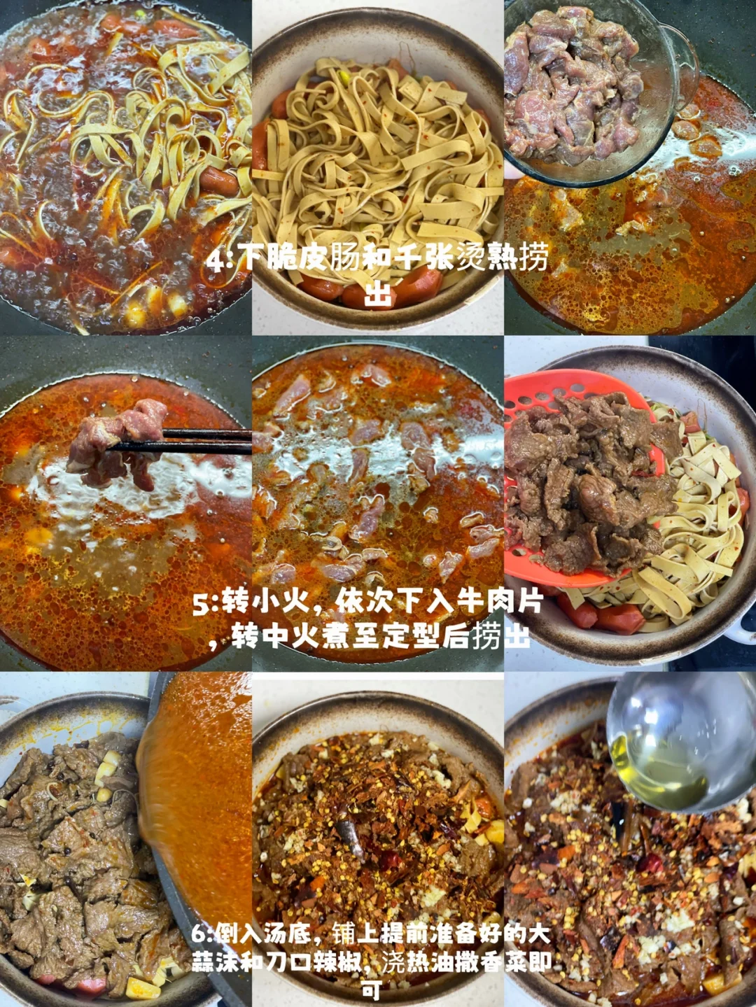5⃣️:转小火,依次下入腌好的牛肉片,下完后转中火煮至定型后捞出,再将汤底倒入碗中