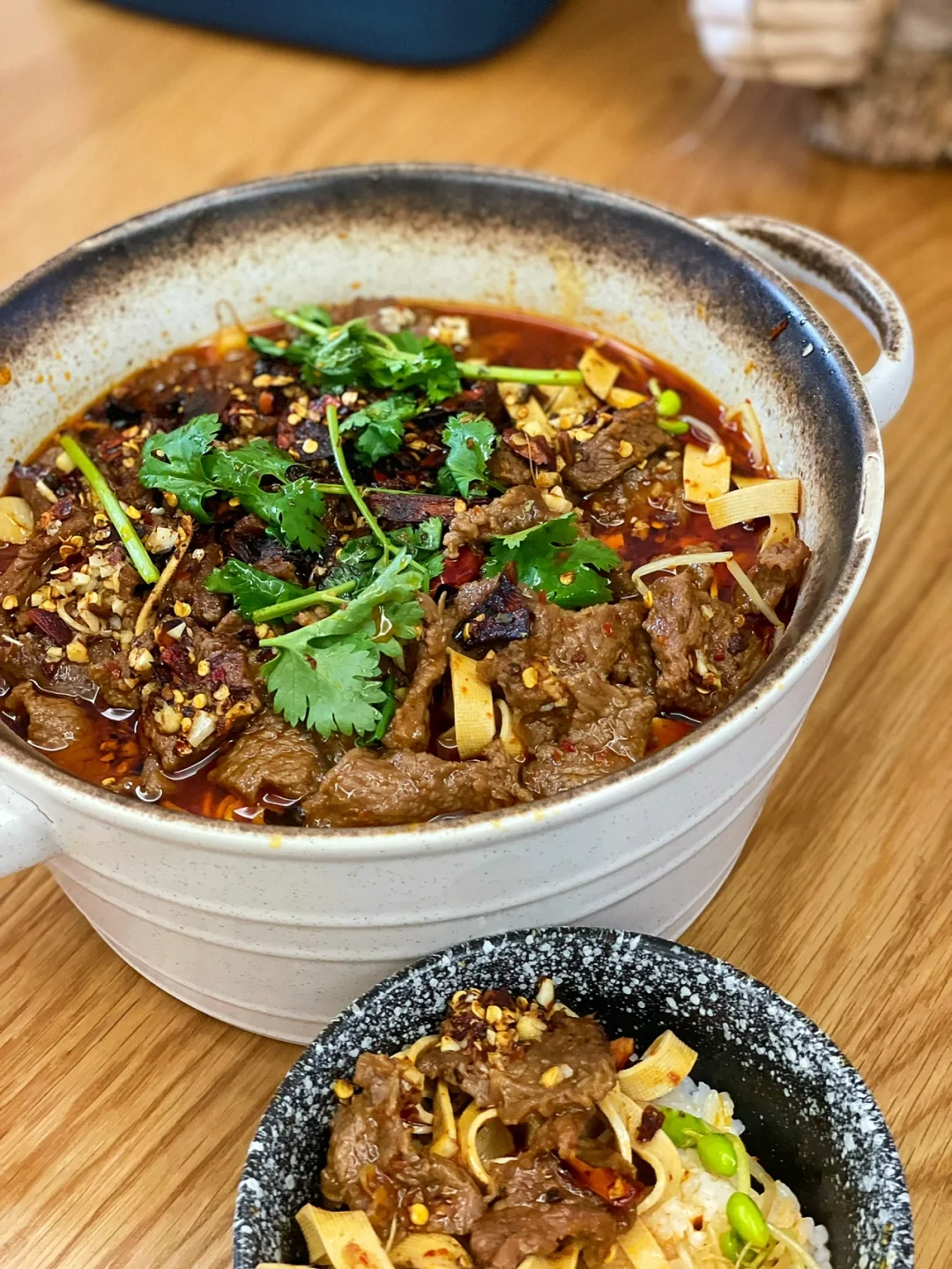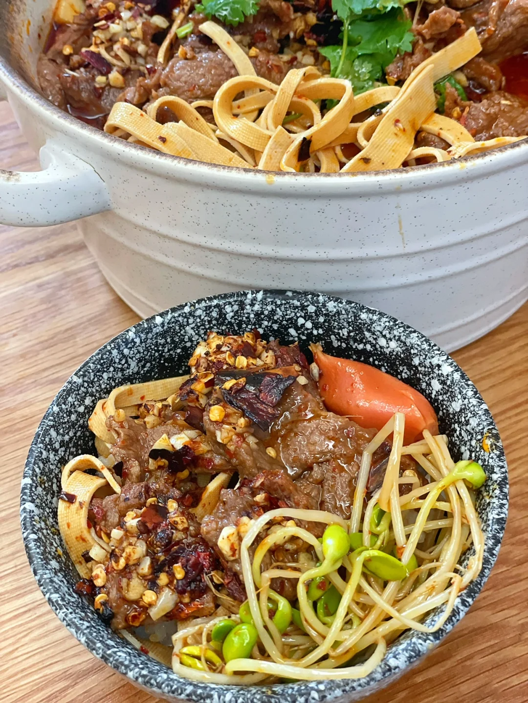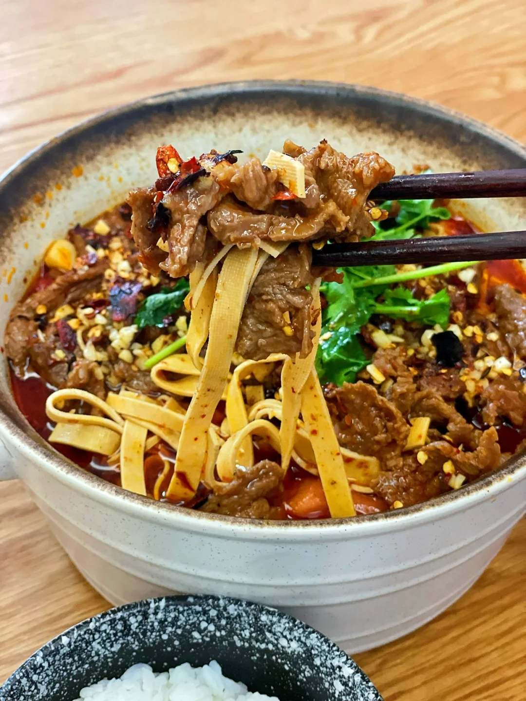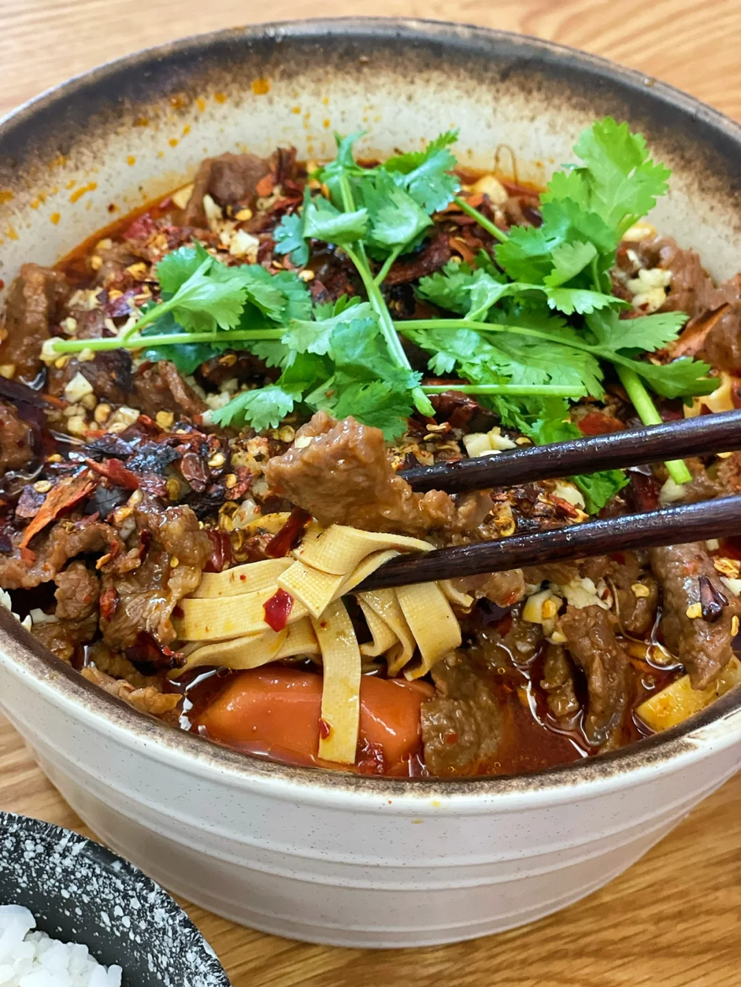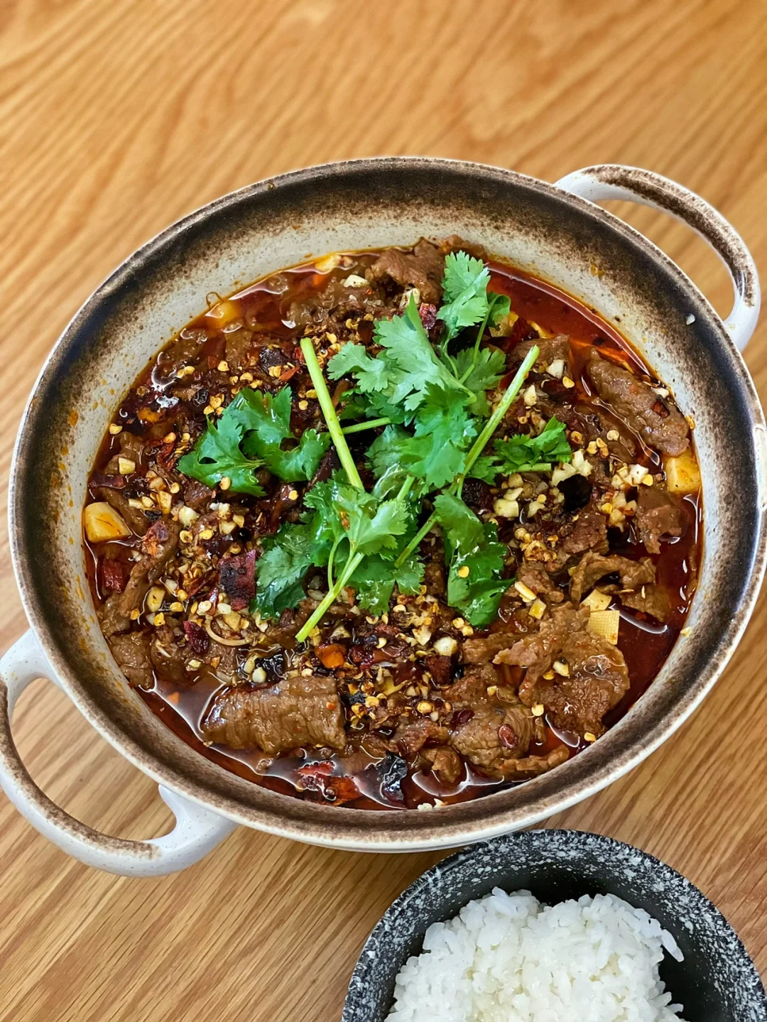 水煮牛肉每隔一段时间必须要吃一次,加了千张,豆皮,香菜的水煮牛肉真的很对胃口,对象回家直接干完一大盆😻
