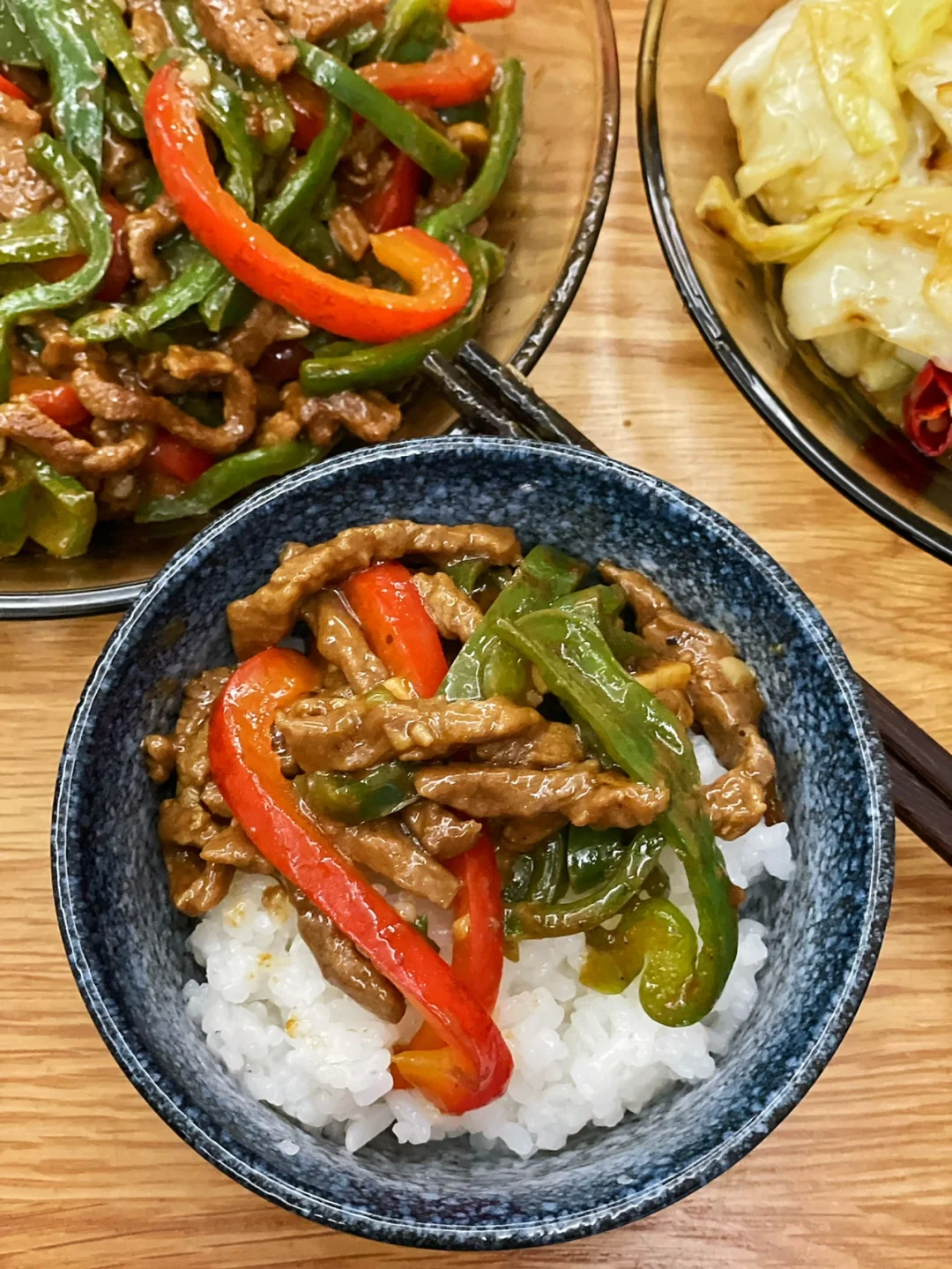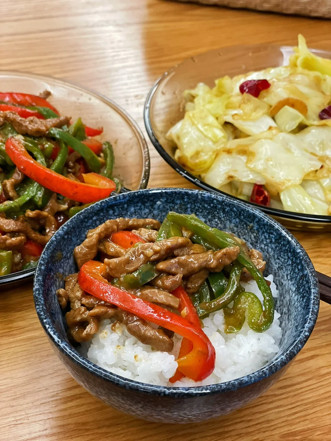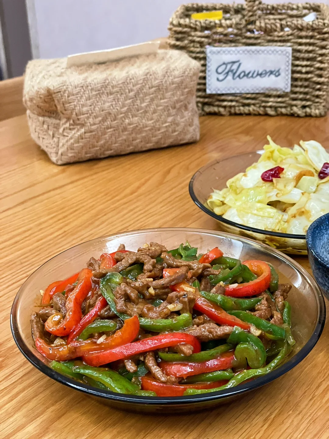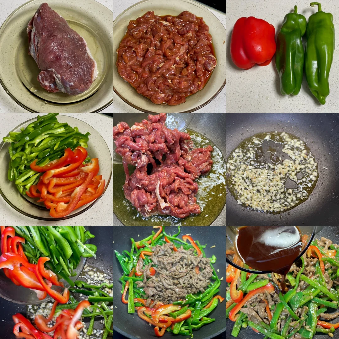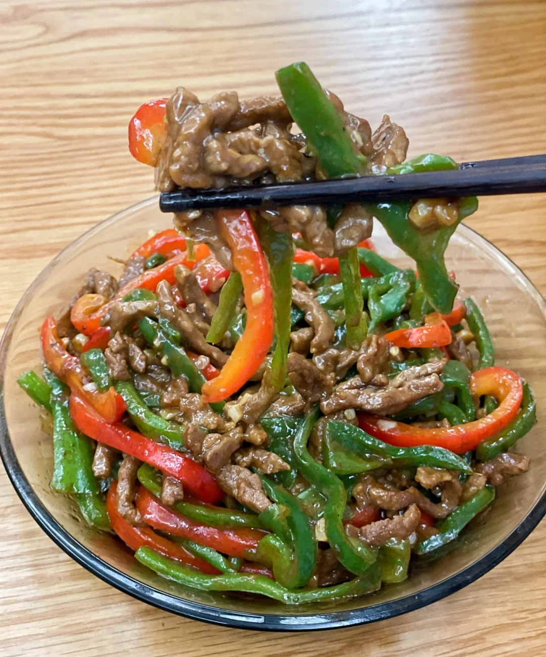 巨好吃的双椒牛肉,超级下饭超级香🤤 🥗食材准备:青椒、红椒、牛肉 做法超级简单👩🍳 1⃣️:姜蒜切沫,牛肉青红椒分别切条,牛肉中加入半勺老抽,半勺盐,一勺淀粉,少量清水抓匀,再加入一勺食用油锁住牛肉水分 2⃣️:调酱汁:一勺生抽+一勺老抽+一勺淀粉+三勺清水 3⃣️:锅中油热爆香姜蒜沫,倒入牛肉炒至变色后盛出,再倒入青红椒炒至断生后倒入牛肉翻炒两分钟,淋上酱汁炒匀即可出锅
