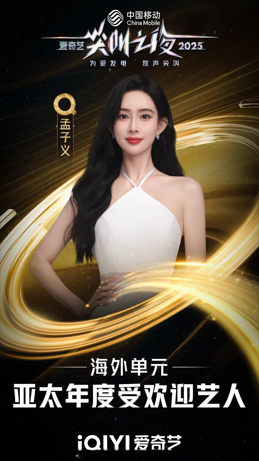 2025爱奇艺尖叫之夜荣誉发布实至名归!恭喜孟子义荣获“亚太年度受欢迎艺人”!你的真诚和努力,我们一直看得到,现在全世界都看到了!为你骄傲!2025爱奇艺尖叫之夜