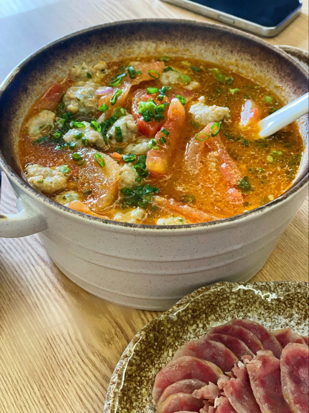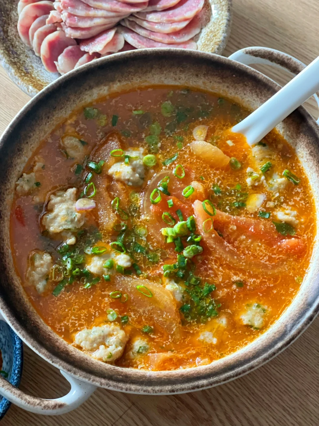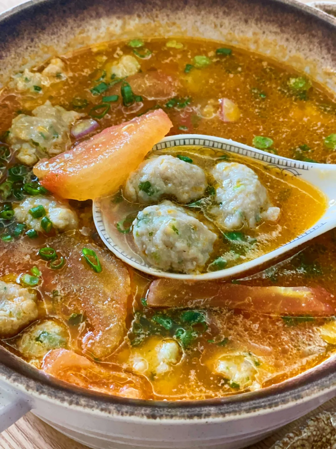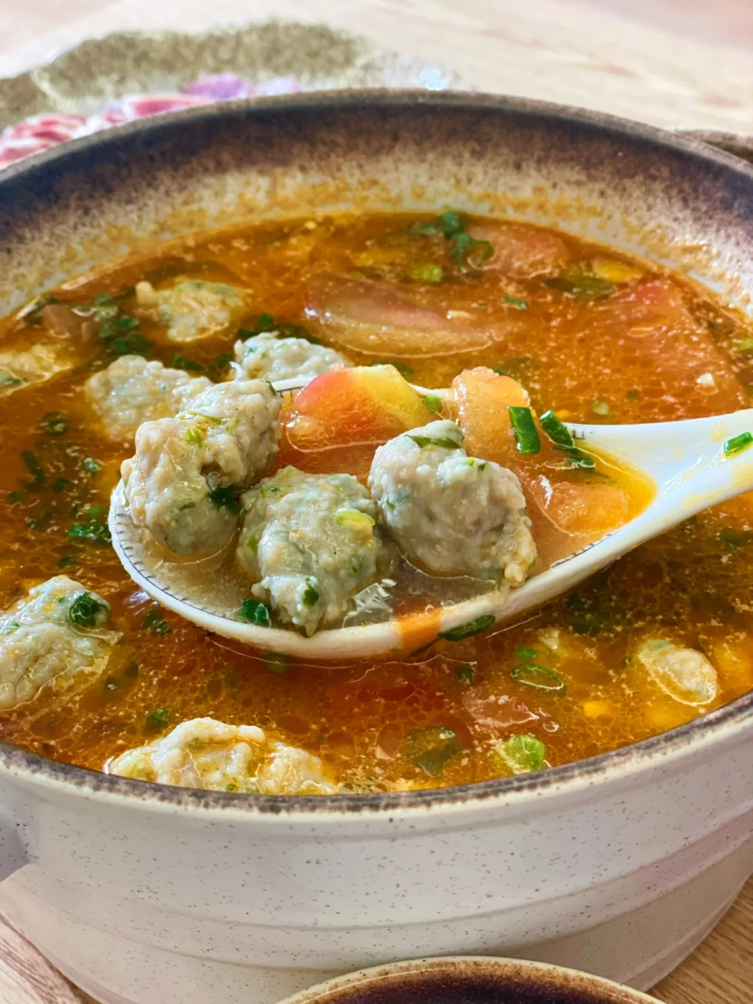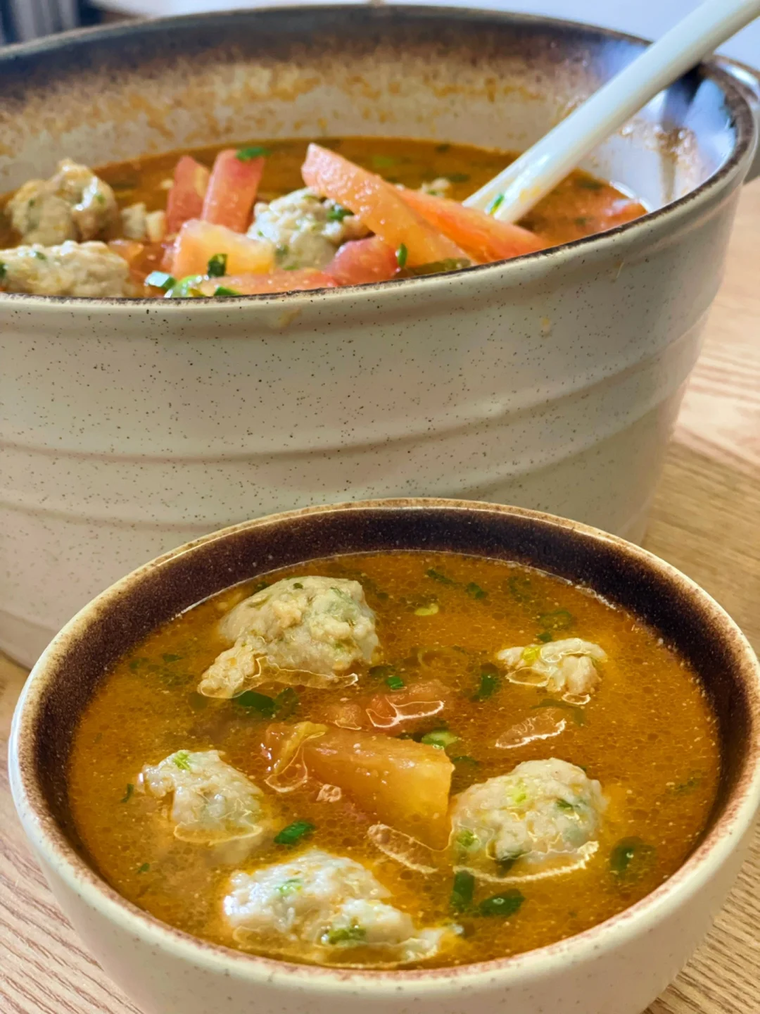 番茄丸子汤,清香营养,不油腻,丸子中加入香菜,香得上头,丸子柔嫩顺滑,番茄味儿浓郁,美味可口,又是喝汤喝饱的一餐吖~~🥣🥣