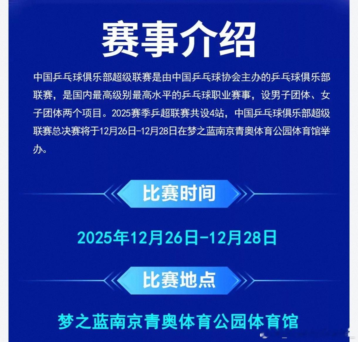 狮友会王楚钦 🦁王楚钦加油 2025乒超联赛总决赛·南京抢票时间:12月9日 12:08⏰比赛时间:2025年12月27日-28日比赛地点:南京青奥体育公园体育馆🏟️赛程:12月27日 19:00 男团半决赛⚠️山东魏桥VS上海地产12月28日 19:00 男团决赛 大家加油一起南京见