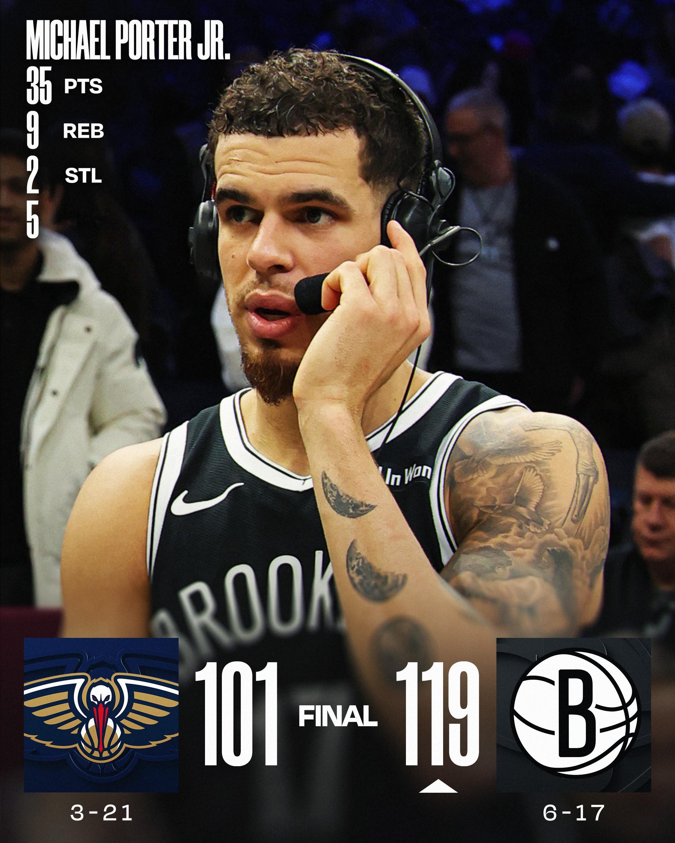 小波特今日数据:35分9篮板3助攻,本赛季在篮网刷爽了。鹈鹕vs篮网