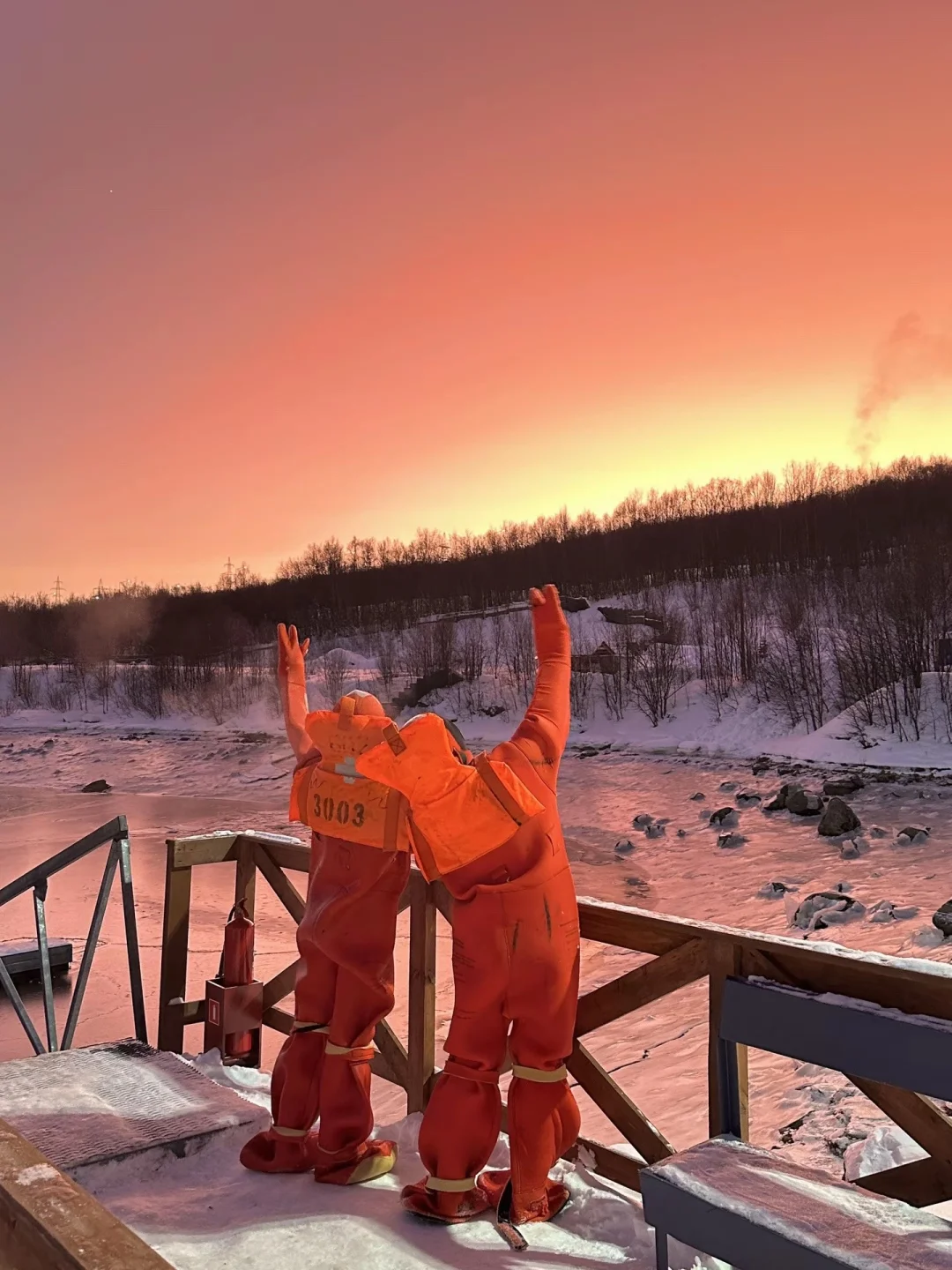 防滑雪地靴选加绒款!捷里别尔卡的雪能没过小腿,普通雪地靴直接湿透;防风冲锋衣+护耳帽+厚围巾缺一不可,北极圈的风跟刀子似的,露一点皮肤都疼;暖宝宝按人均30片带!贴身上、手机、相机都要贴,低温下相机5分钟就关机,手机直接冻黑屏