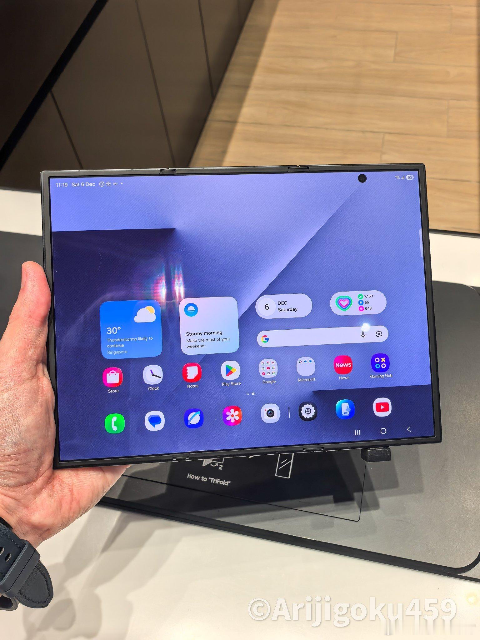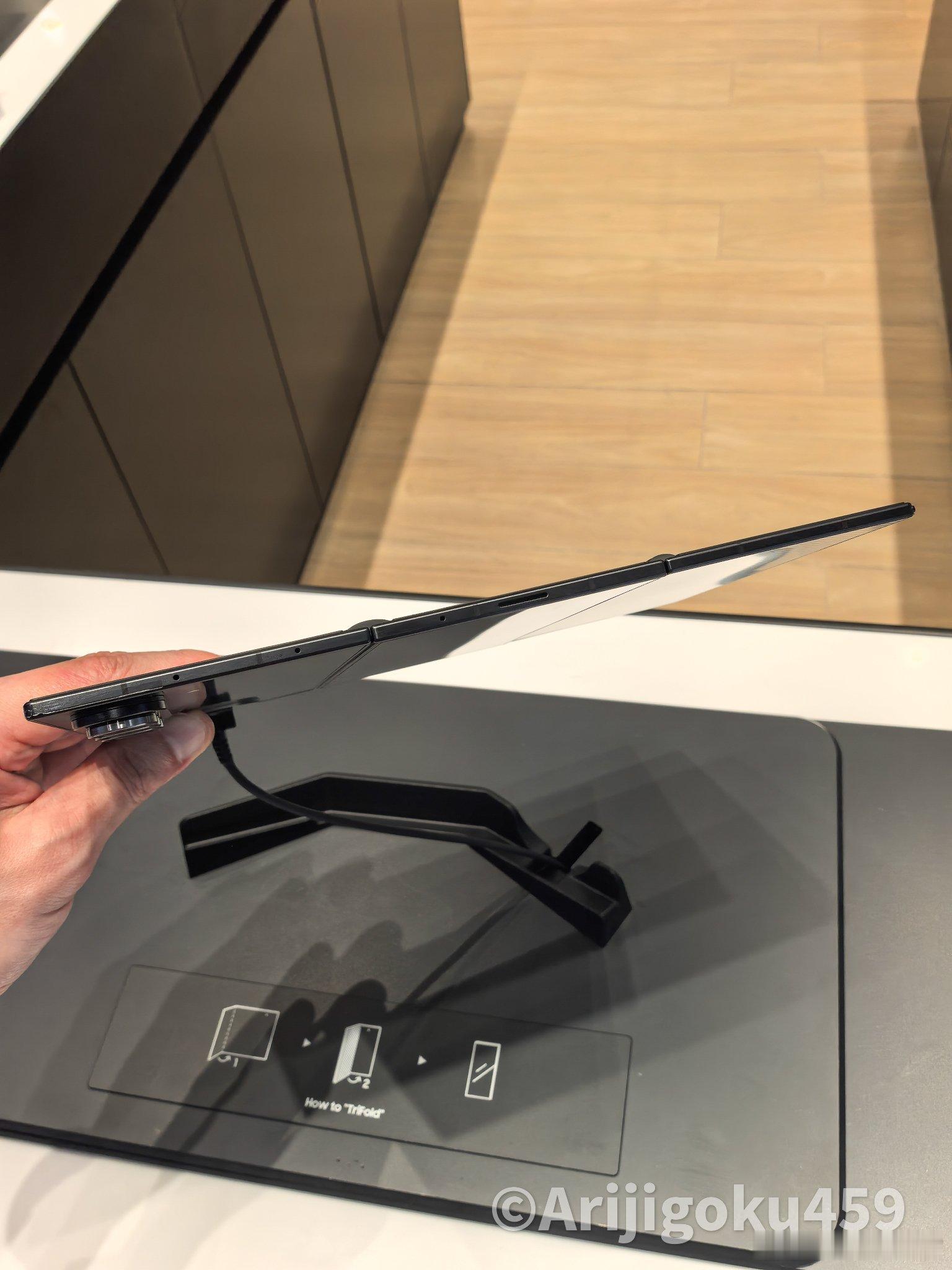 来自外媒实拍的三星Galaxy Z TriFold真机,整体质感还是可以的,就是这个“Z”造型我不是太喜欢,感觉黑边是不是也宽了点。客观来说,满分10分的话,这外观造型你们觉得可以打几分?