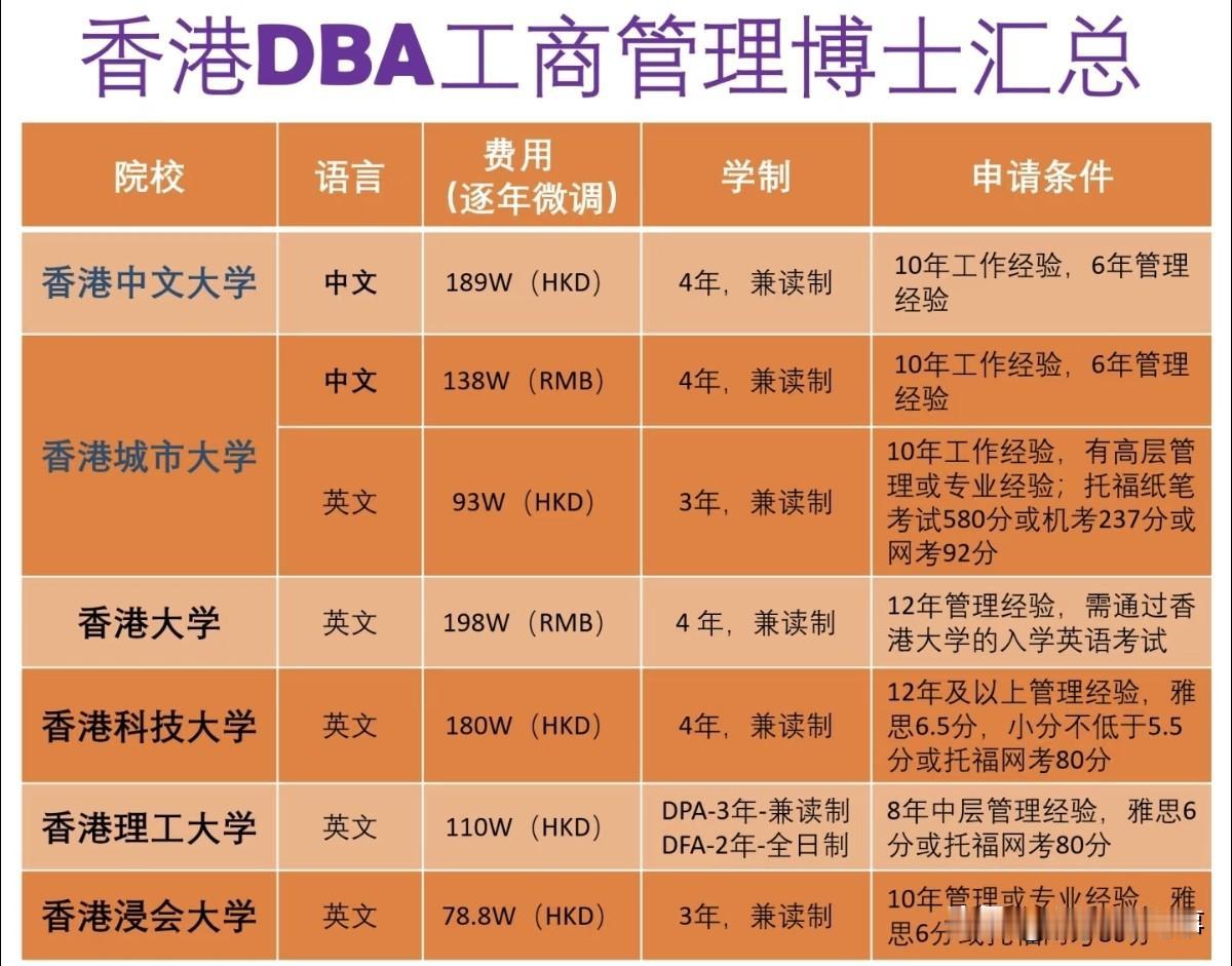 香港的大学最赚钱的项目就是工商管理,比如DBA项目,工商管理博士,一年的学费至少100万元,最高的学费就是香港大学的DBA, 一年学费高达 198万元,相当于很多打工人10年到 20年的收入总和了。