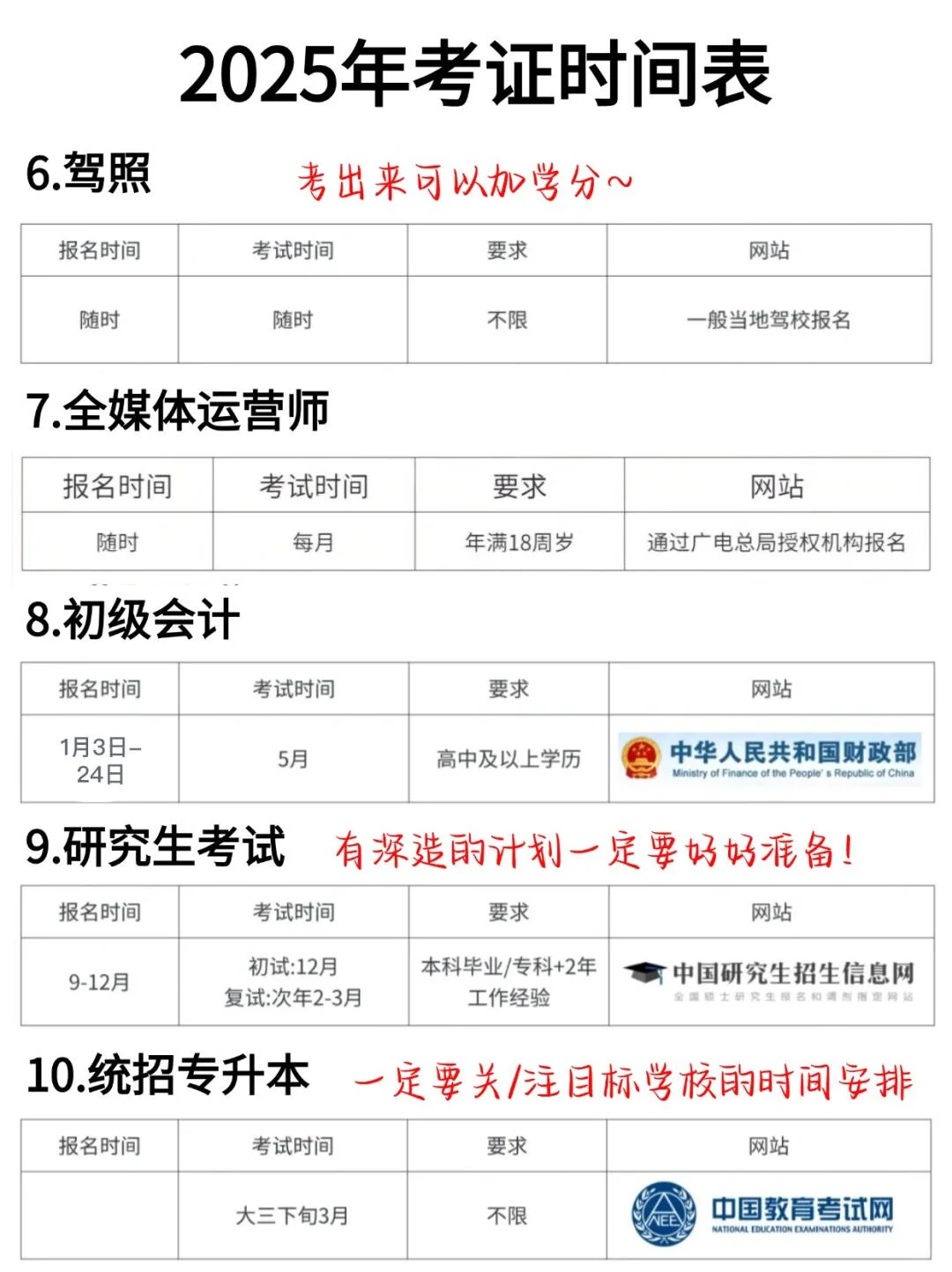 大学生考证时间表 考证时间表 含金量高的证书 大学生考证 考证规划 大学生活 学习干货