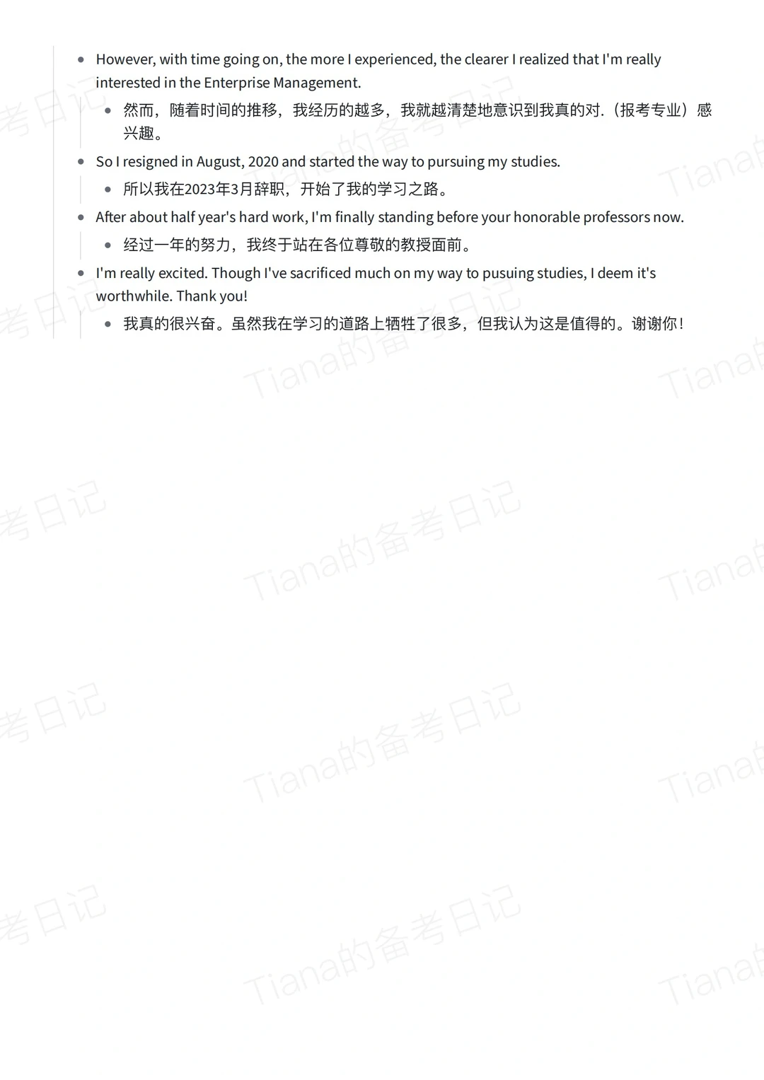 💪🏻【优秀品质】总的来说,我是一个勤奋的学生。在过去的四年里,我一直尽我最大的努力掌握尽可能多的专业知识。正是我的勤奋使我积累了足够的技能和能力。