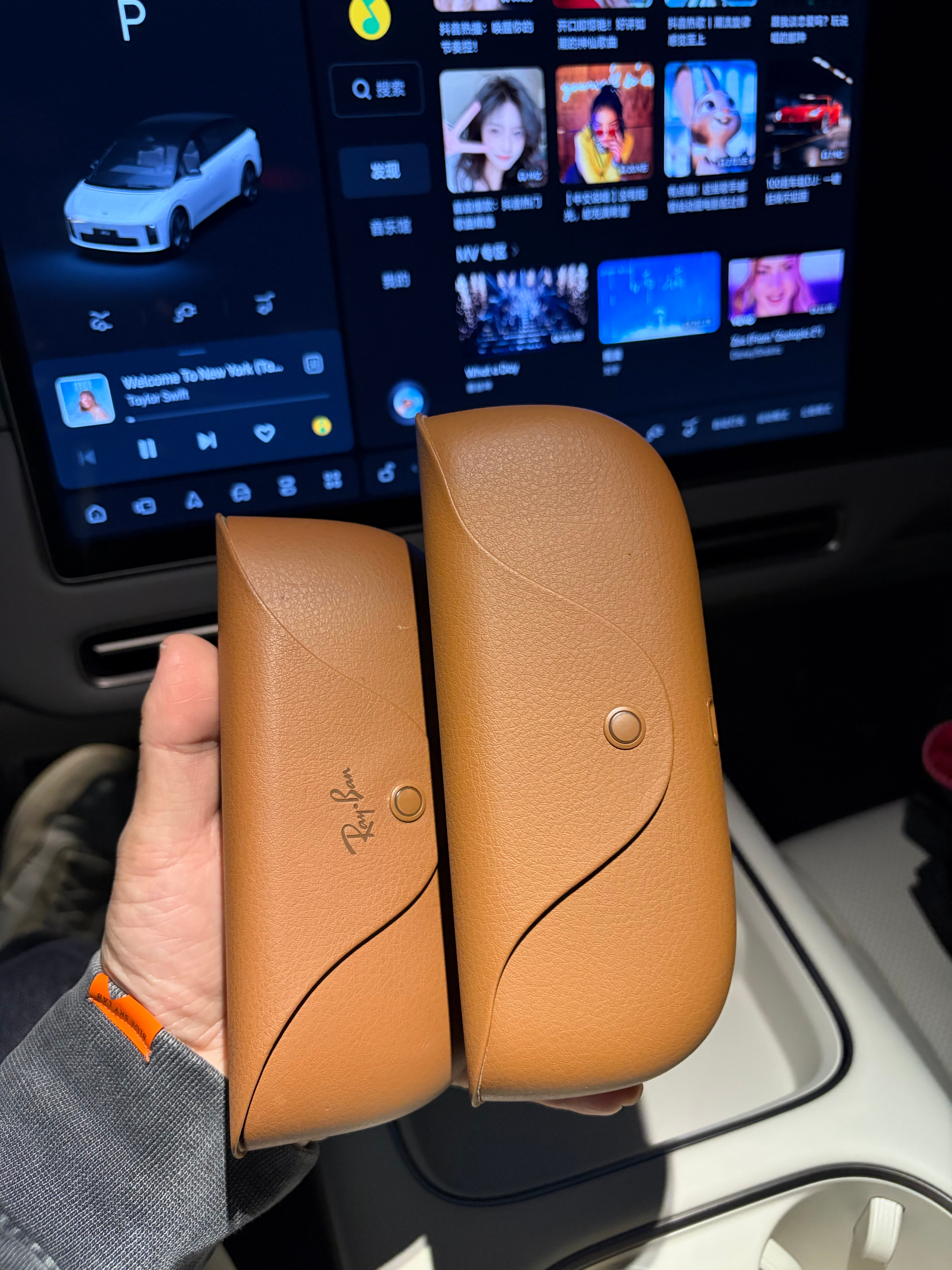 车上放了两副智能眼镜,我还担心会认错,还好大一号的是理想Livis不能无线充电的是RayBan Meta