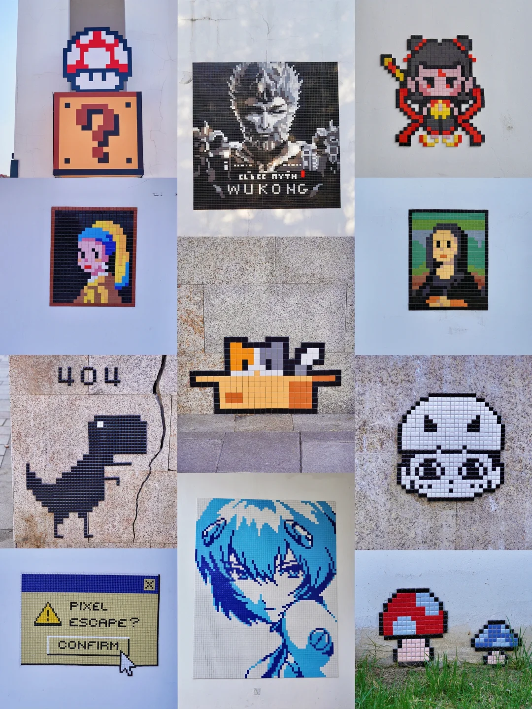 美院附近的象山艺术公社,好有艺术气息 白色的建筑,搭配多巴胺色彩涂鸦🎨 还有散落在园区里的像素画🖼️ 👉🏻《超级马里奥》、《带珍珠耳环的少女》、《蒙娜丽莎的微笑》、《黑神话悟空》、《梵高自画像》等… 来这里打卡寻宝超有趣🥰 园区不定期举办活动艺术展,有几家咖啡店和文创店,拍照也很出片📸 还有超大片的草坪,养宠人士带狗狗🐶来玩会超级开心🥳 📍地址:象山艺术公社。 🎫门票:免费🆓 🚇交通:6号线【美院象山站B口】,步行10min