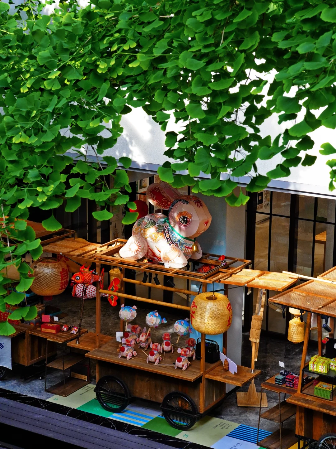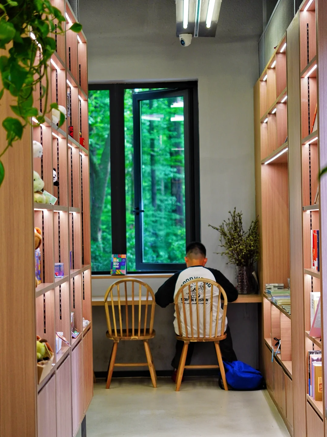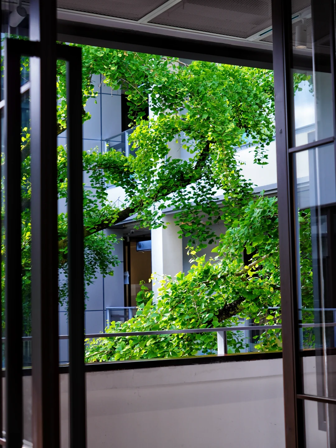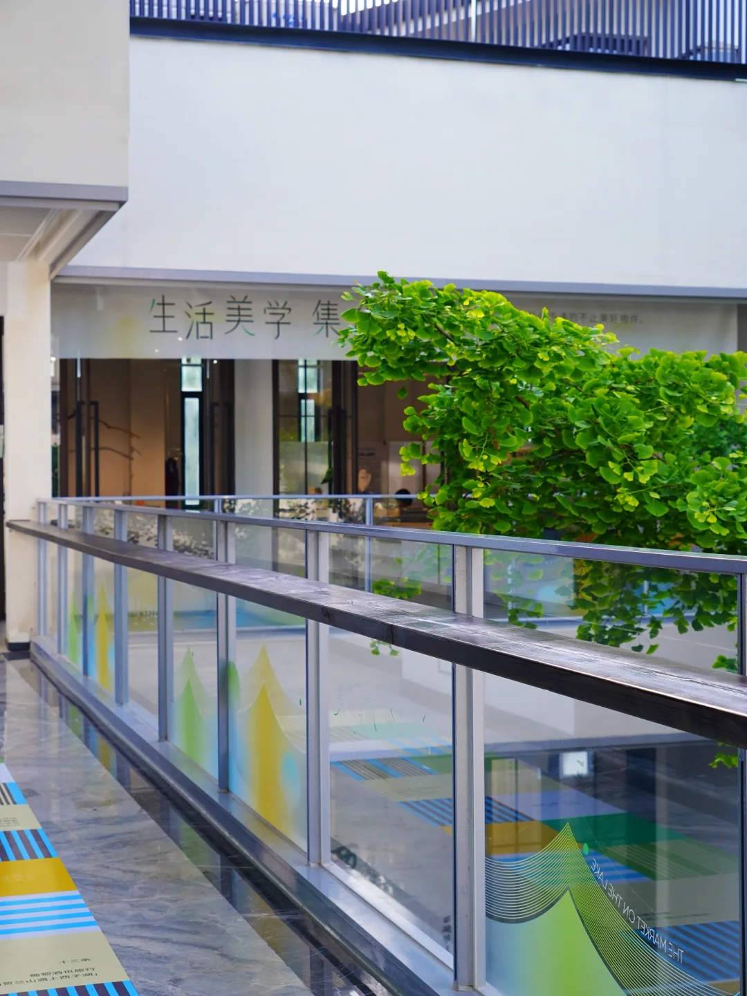 整个空间有3层楼,集合了书店、文创、咖啡、酒、市集和展览。建筑中间有一棵高大的百年银杏树🌳,每一层都被绿意环绕🍃,阳光☀️透过枝叶,光影照在白墙上,一整个春夏氛围感拉满!可以坐在树下喝咖啡☕️,看书📖,安静地待一下午。
