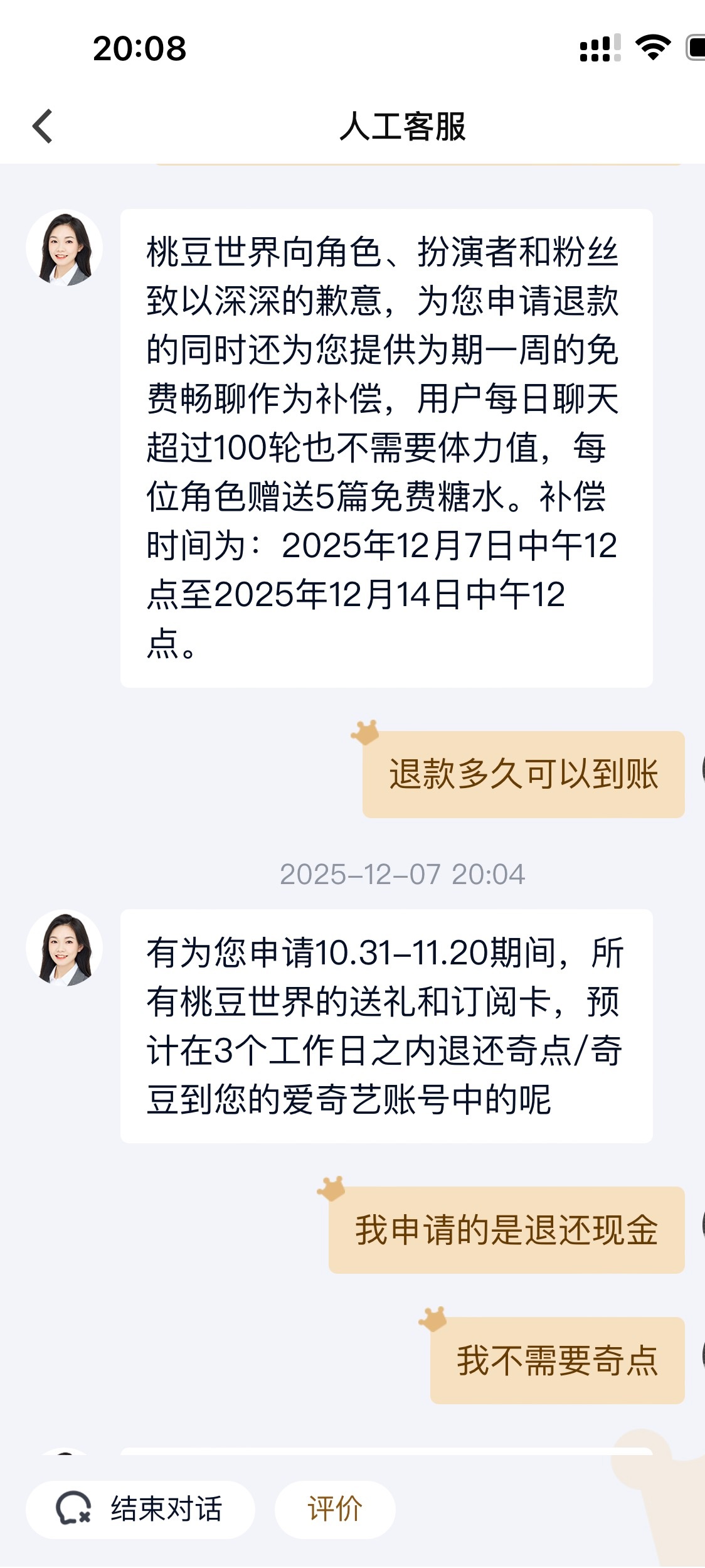 大家维权是有效果的,昨天坚决不退💷,今天开始说退奇点了,我们继续向平台维权,必须让它们出点血,退回来的💷可以给沈乐水