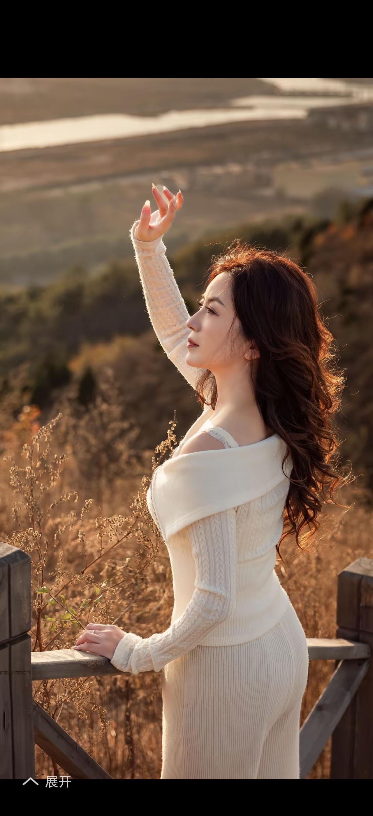 在夕阳下,优雅的白色连衣裙与自然融为一体,感受大自然的宁静与美好。