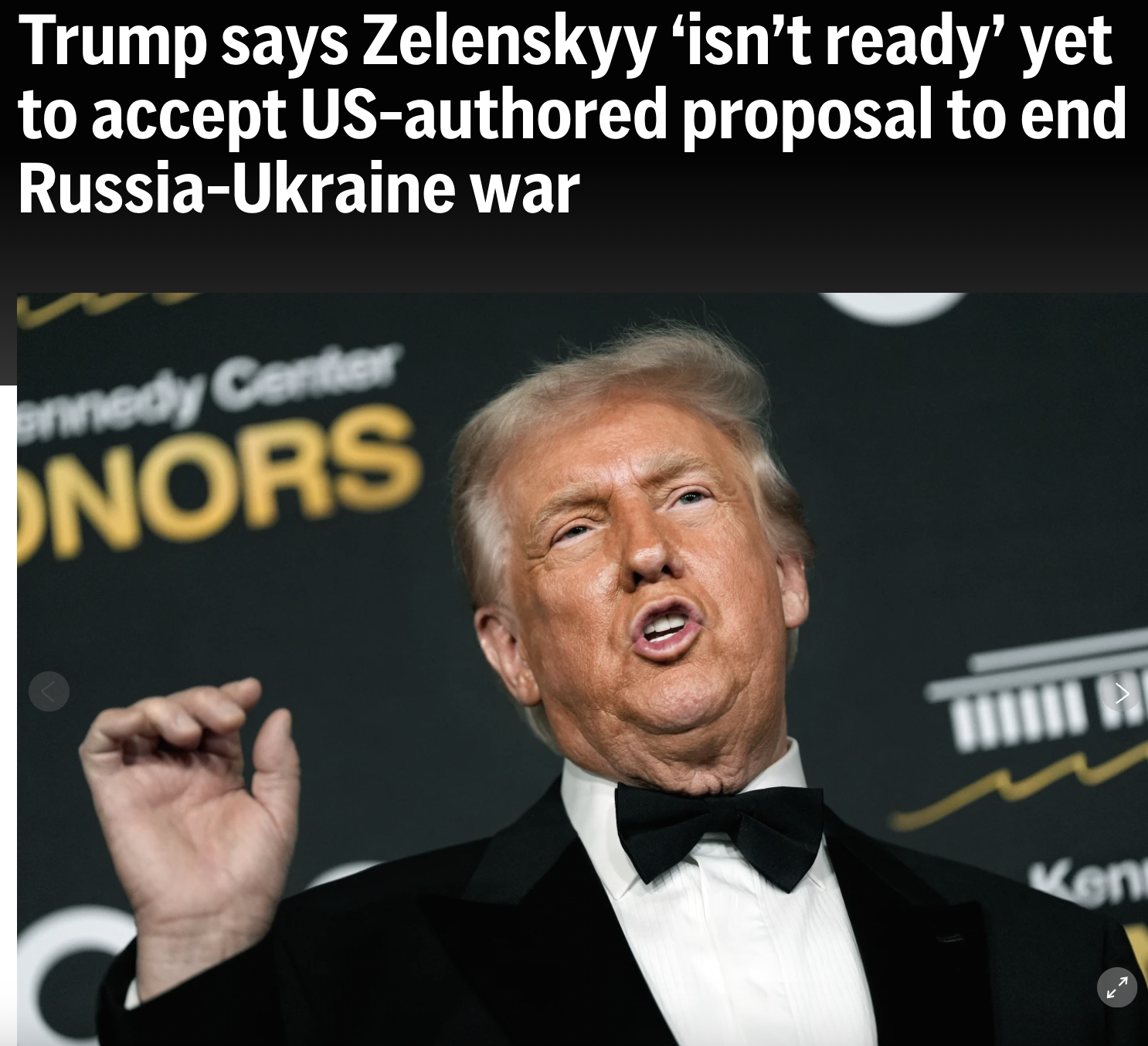 特朗普称对泽连斯基失望【特朗普暗示泽连斯基阻碍谈判】据美联社消息,美国总统特朗普7日称,乌克兰总统泽连斯基“尚未准备好” 签署美方起草的和平方案。消息称,美国与乌克兰谈判代表已于周六完成了为期三天的磋商,磋商旨在缩小双方在美方提案上的分歧,但特朗普随后对泽连斯基提出了批评。在周日晚间接受记者采访时,特朗普暗示,正是乌方领导人的态度阻碍了谈判的推进。“我有点失望的是,截至几小时前,泽连斯基总统还没看过这份提案。他的团队对此表示认可,可他本人却没有,” 特朗普还补充道:“我认为俄方对此并无异议,但我不确定泽连斯基是否愿意接受。他的团队很支持这份提案,但他还没做好准备。”据媒体此前报道,俄罗斯总统普京其实并未公开对白宫的这项方案表示认可。普京上周表态称,其中一些内容“不可操作”。(环球时报)