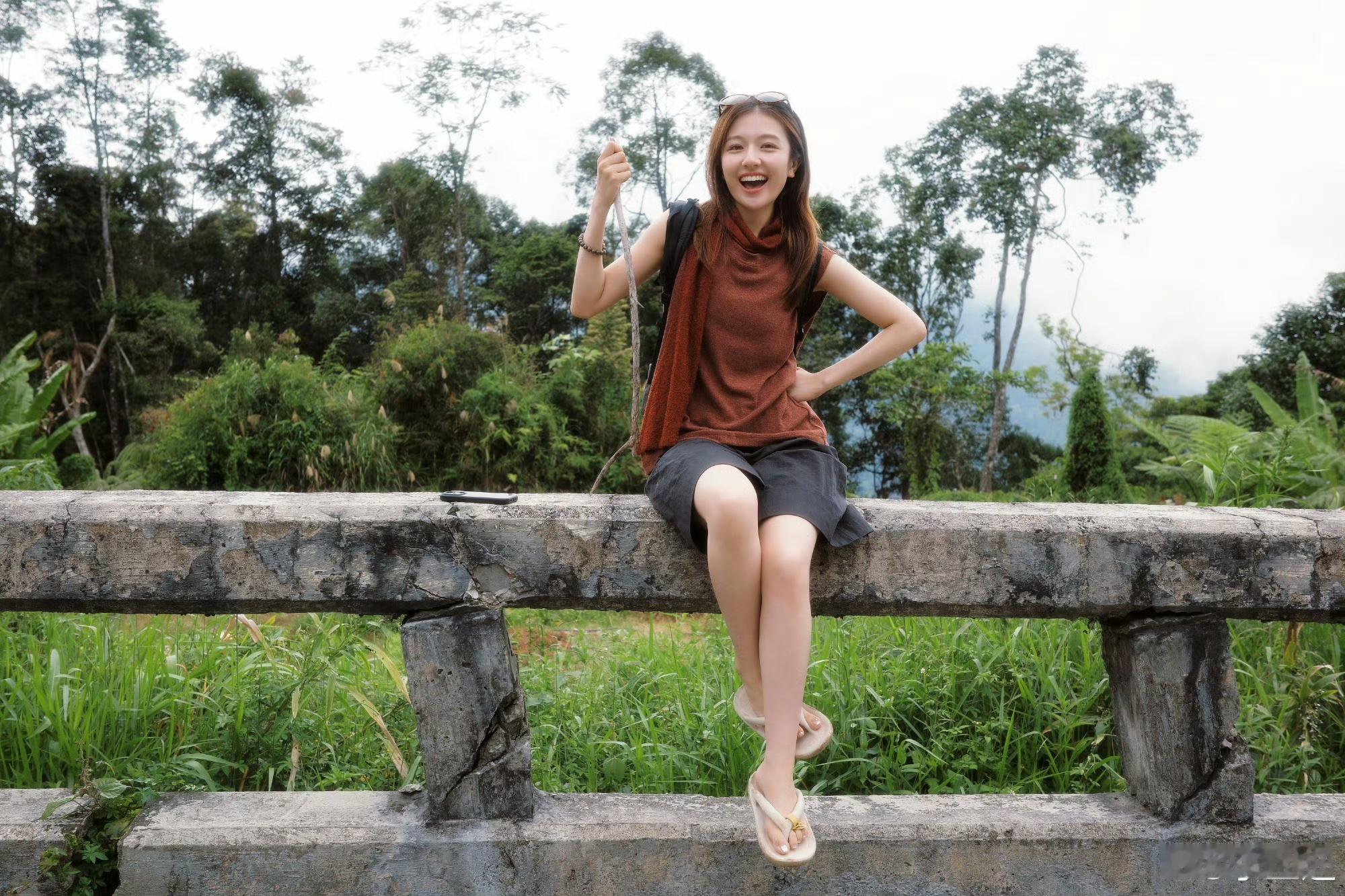 吴艳妮在成都穿着短裤大腿看起来很粗壮,表情自信又张扬