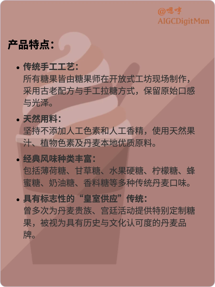具有标志性的“皇室供应”传统: 曾多次为丹麦贵族、宫廷活动提供特别定制糖果,被视为具有历史与文化认可度的丹麦品牌。
