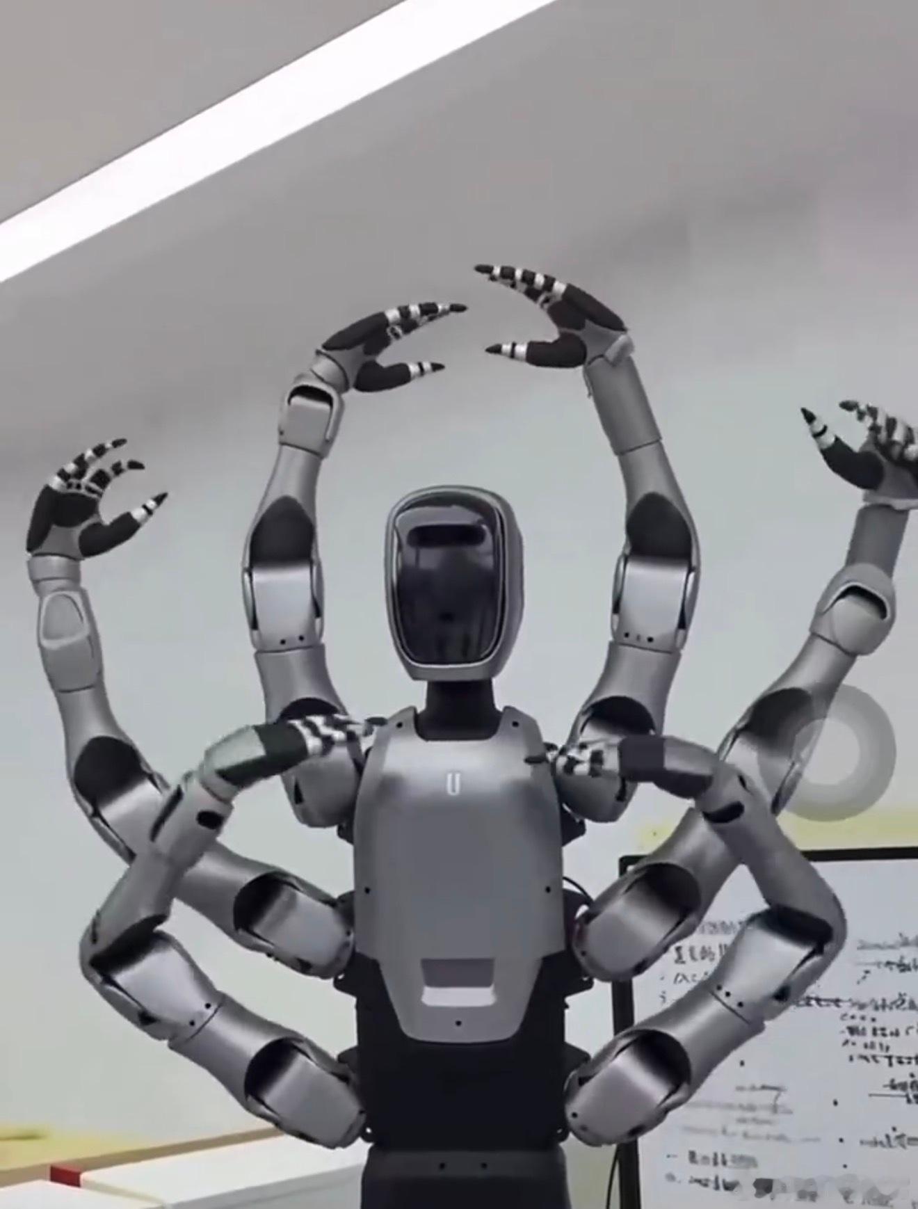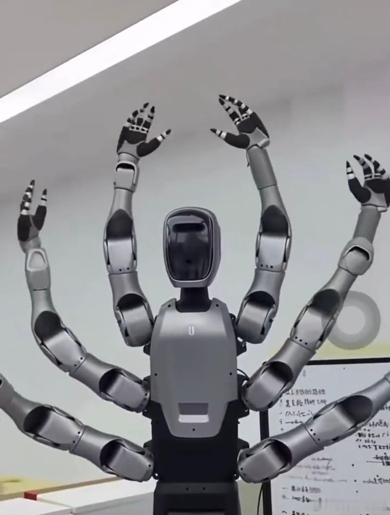 好家伙,这就是美的最新推出的六臂人形机器人,名字叫「Miro U」,最大亮点是它有六条机械胳膊,可以实现六条手臂协同作业,听着好像还不错,就是看起来多少有点瘆人,你们觉得咋样?