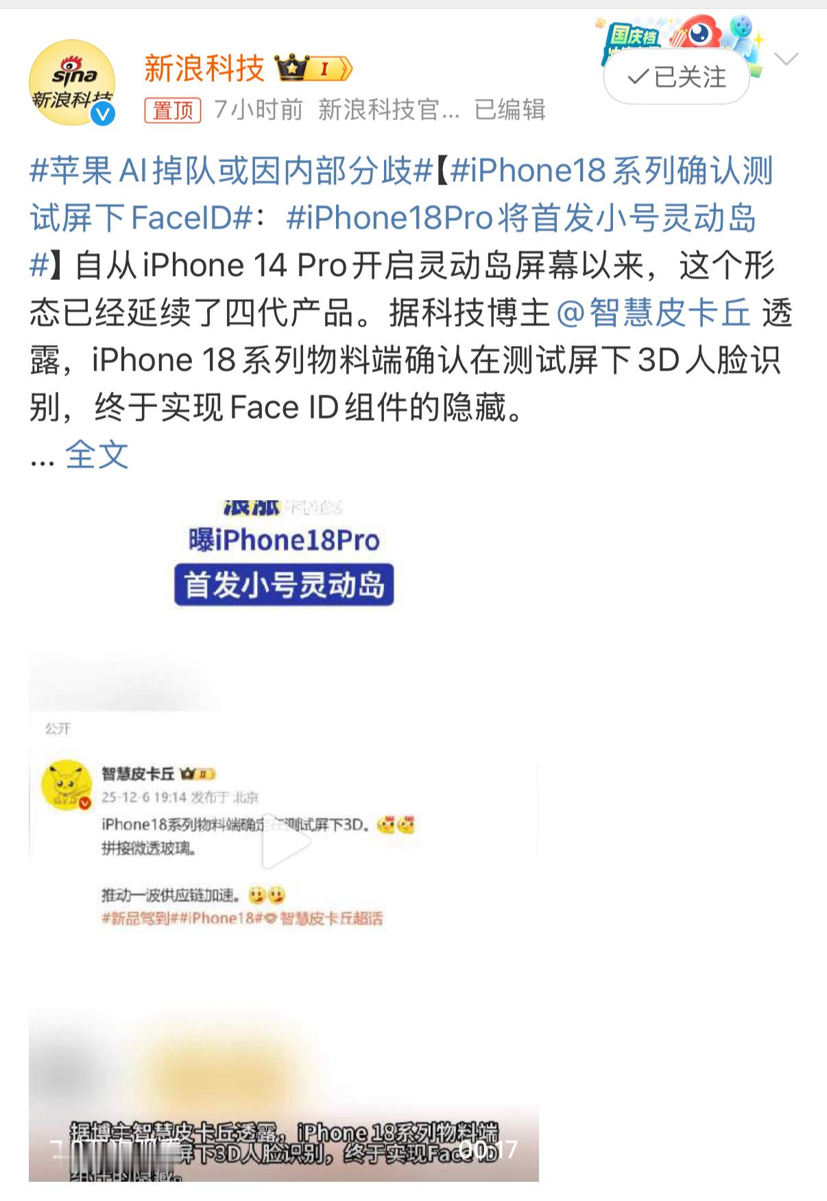 iPhone18系列确认测试屏下FaceID说真的,真整屏下FaceID的话,刘海屏要么变得更小,要么直接居中挖孔了,总不能是左侧挖孔吧?这样很不美观