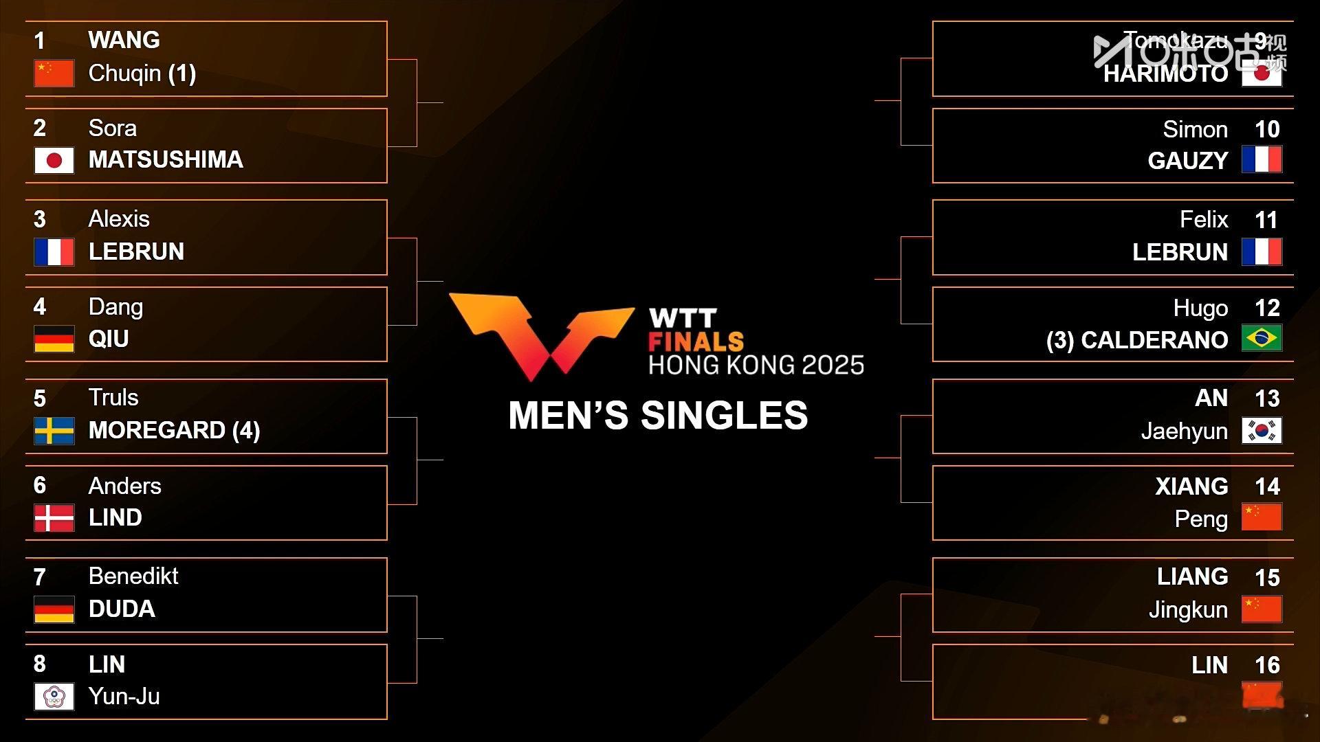 林诗栋首轮对阵梁靖崑2025WTT香港总决赛男单抽签,林诗栋首轮对阵梁靖崑。 梁