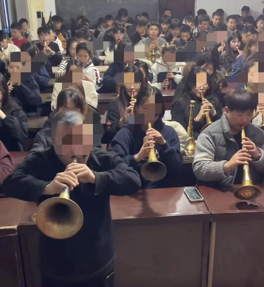 一般人可真承受不了! 这唢呐课就算是在学校里上,附近的居民也够呛能承受住,这么大的声波冲击吧! 感觉这教室里的学生,放学之后,脑瓜子里也是嗡嗡的,这么多唢呐一起吹,可不是一般人能承受住的,那直冲天灵盖的音波,一般人可真承受不了。